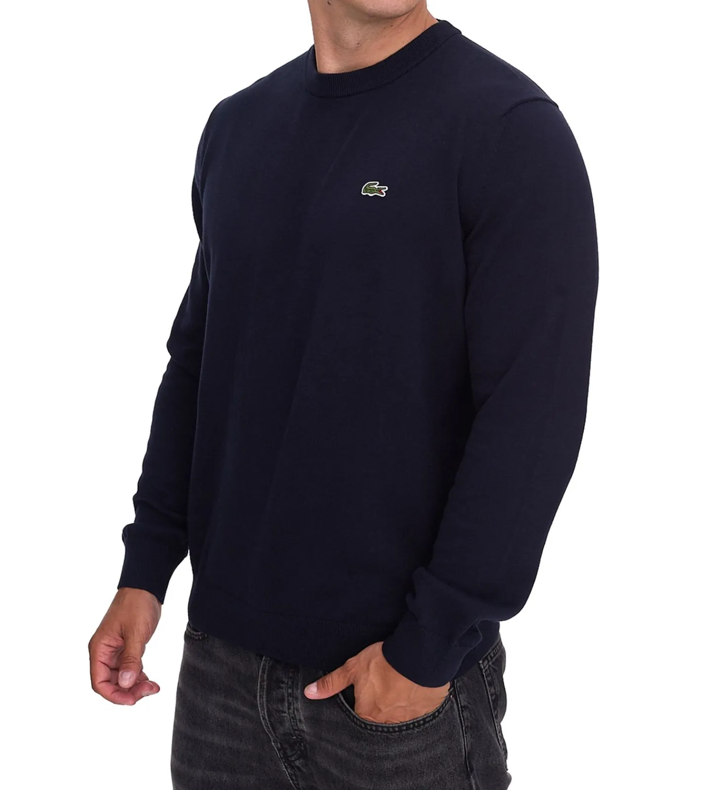 Lacoste Herren Strick-Pullover Baumwoll-Pullover mit Logo-Stickerei Langarm-Shirt AH0128 00 166 Dunkelblau
