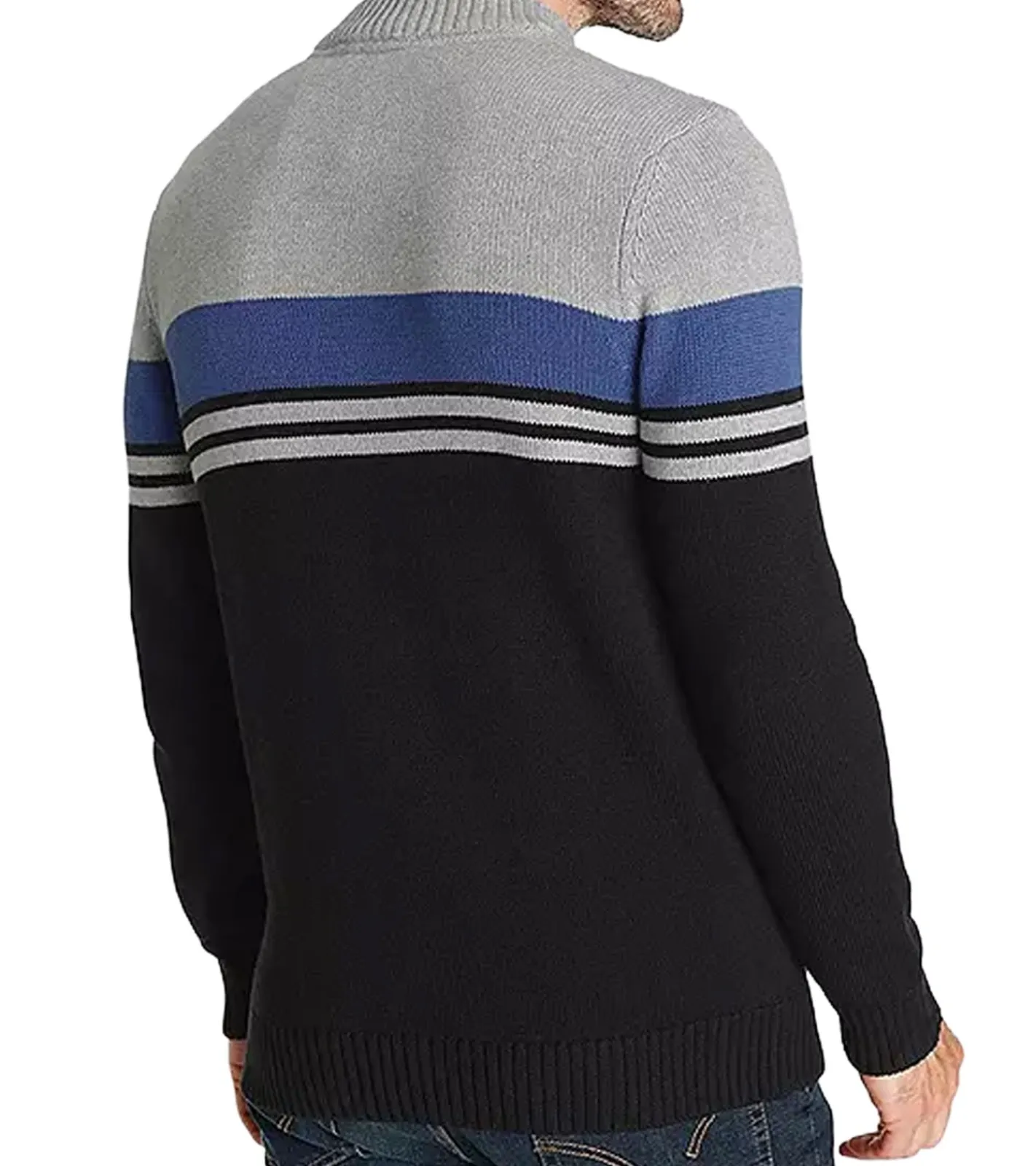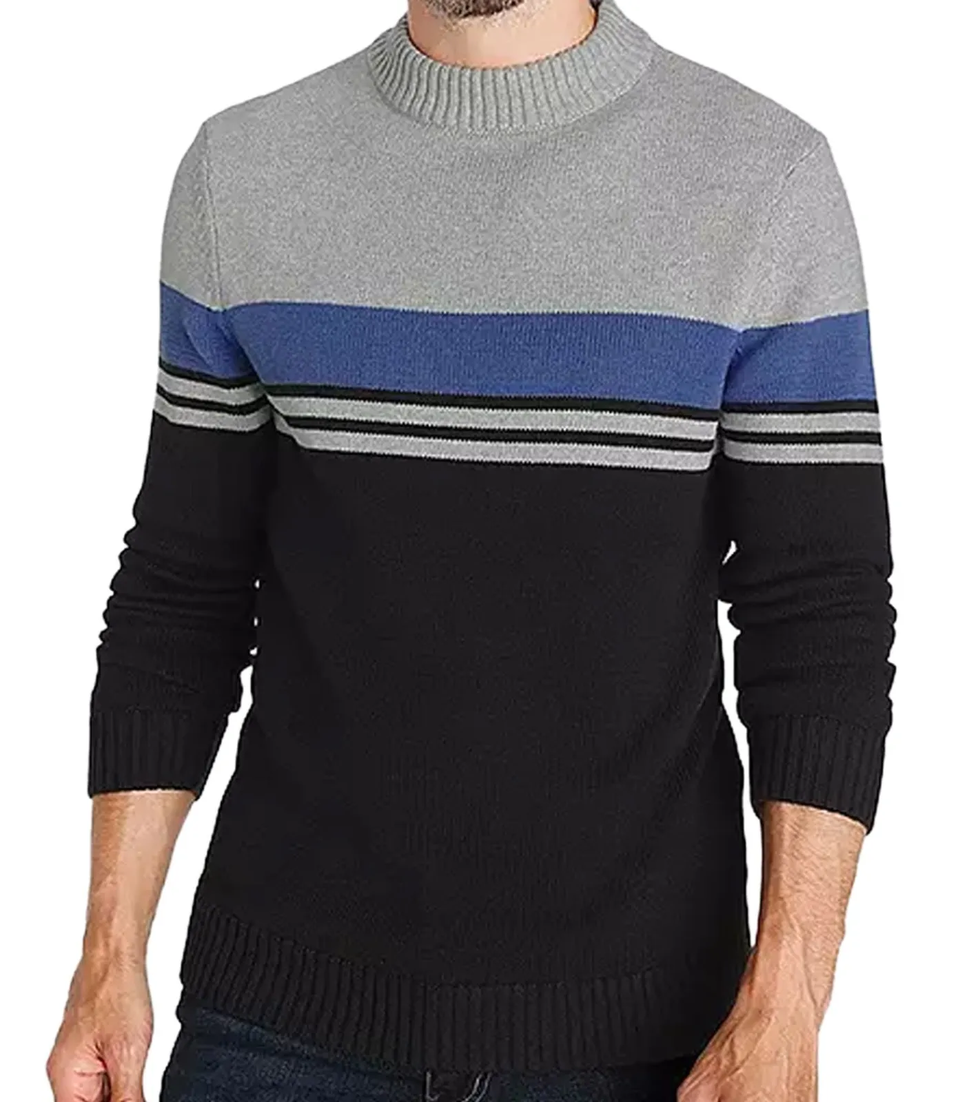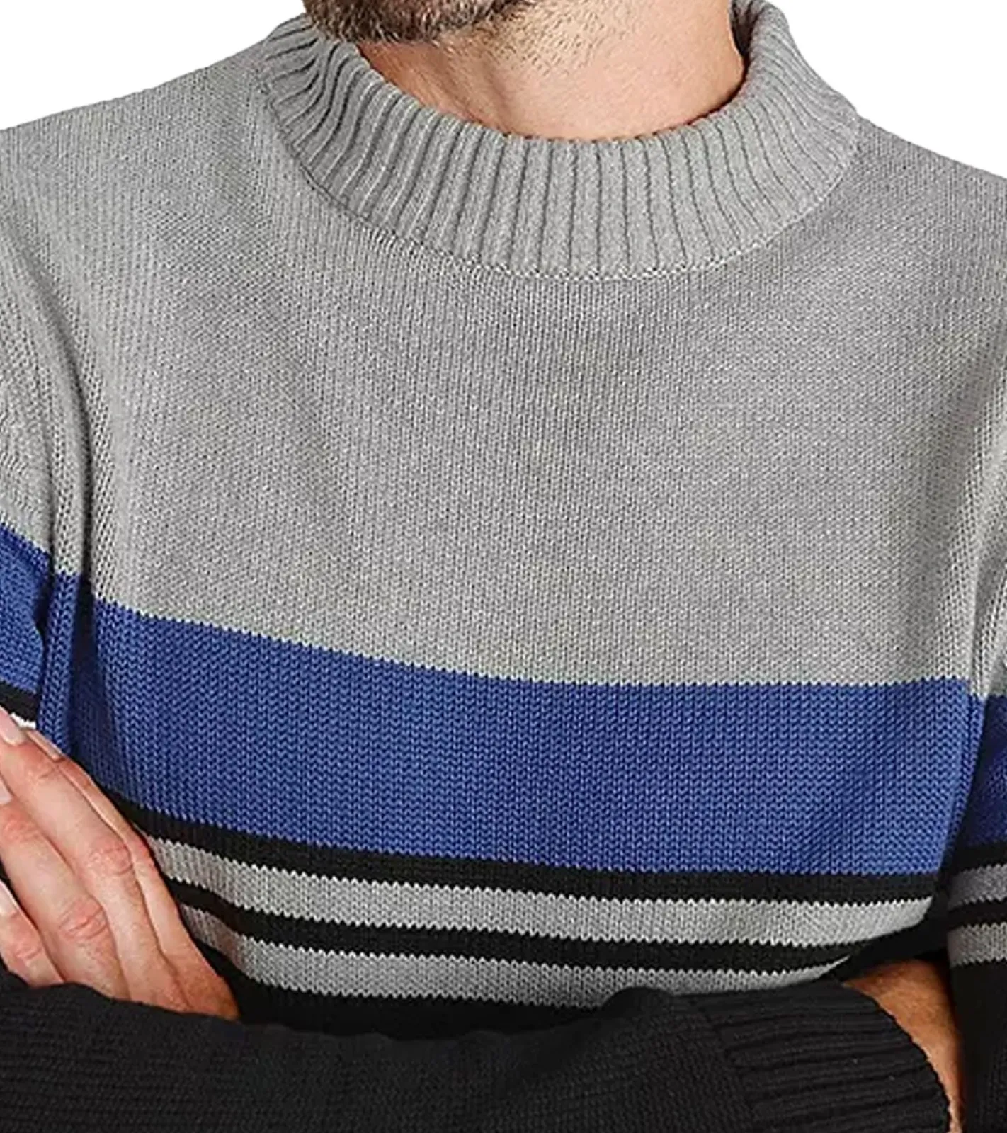 MAN`S WORLD Stripe Round Neck Herren Strick-Pullover mit Baumwoll-Anteil Color-Blocking 4485 8262 Grau/Schwarz/Blau