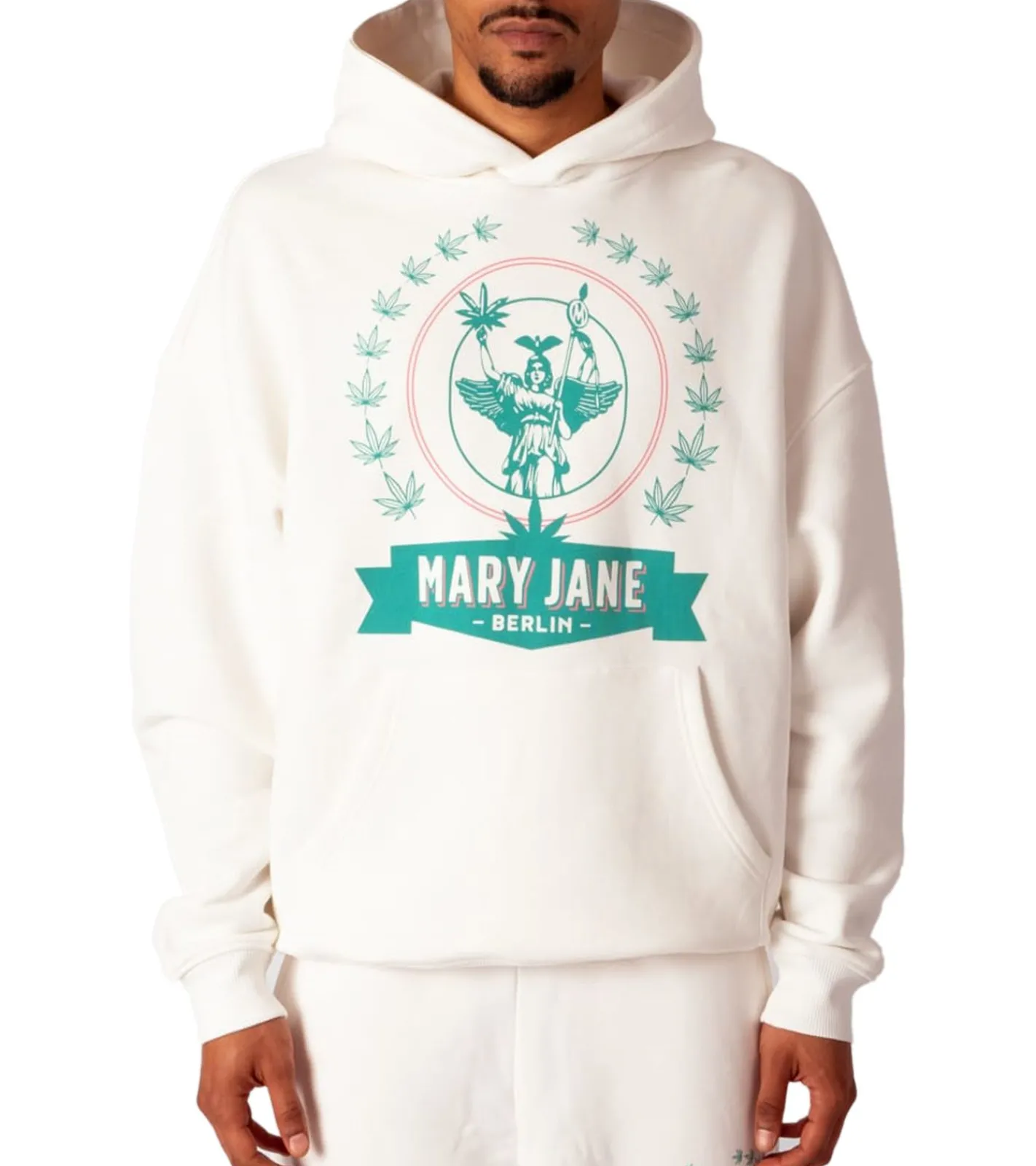 MARY JANE BERLIN Herren Kapuzen-Pullover mit Logo oder Schriftzug Print modischer Baumwoll-Pullover Hoodie 2406-4-SW Weiß oder Hellblau