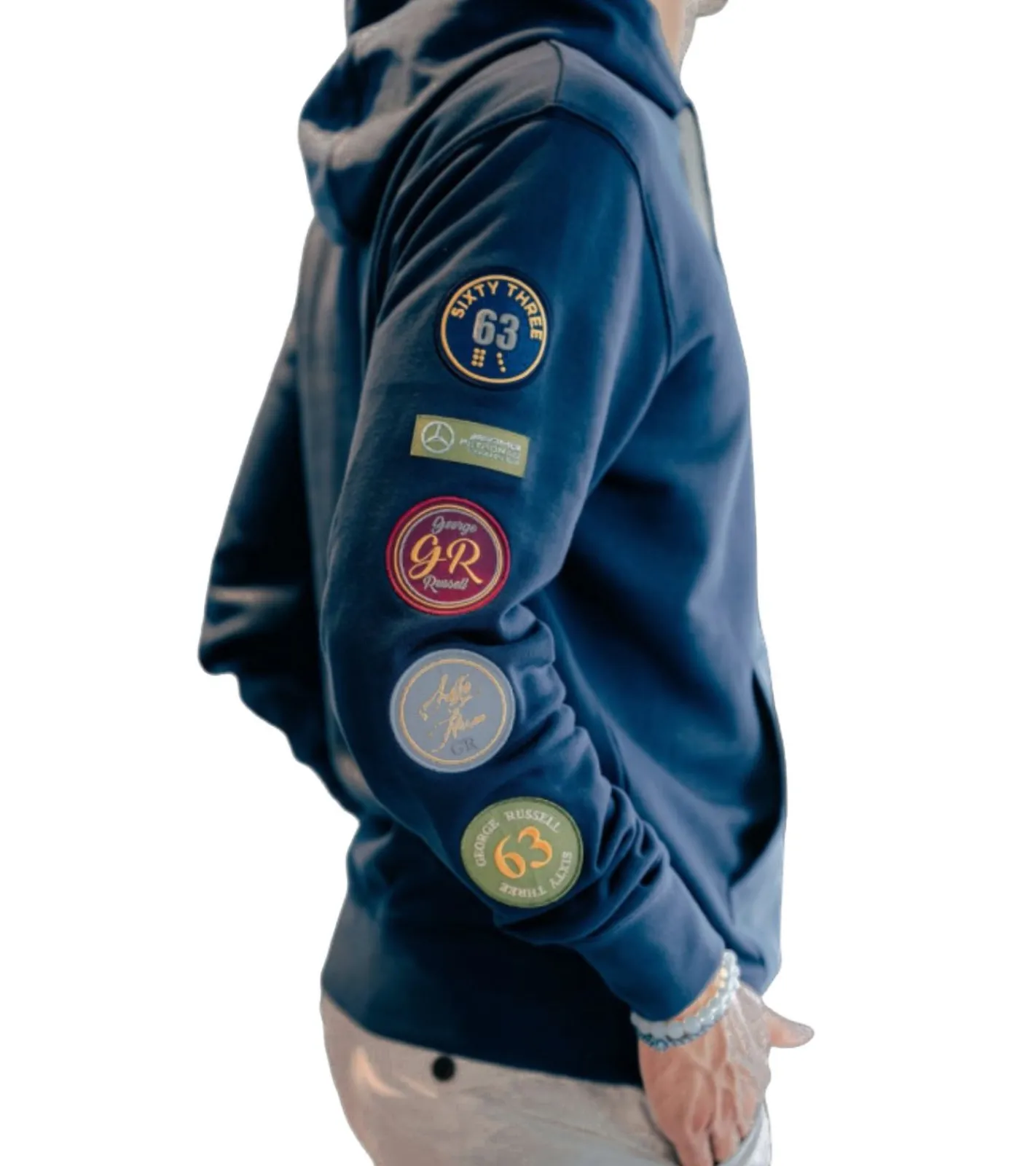 Mercedes-Benz AMG Petronas George Russell Herren Hoodie Baumwoll-Pullover Kapuzen-Pullover Sweater 701223492 001 Dunkelblau