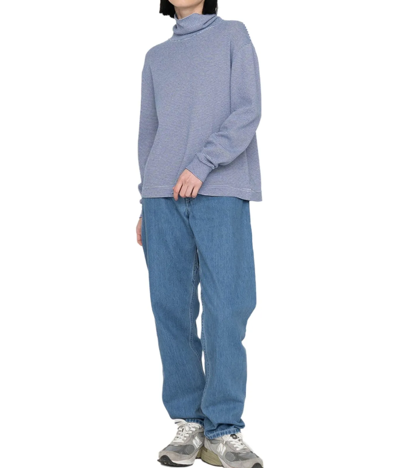 nanamica Damen Rollkragenpullover mit Streifen Langarm-Rollkragen Frühlings-Pullover SUHF163 Blau/Weiß