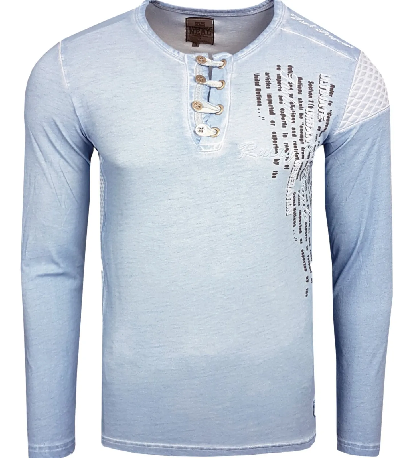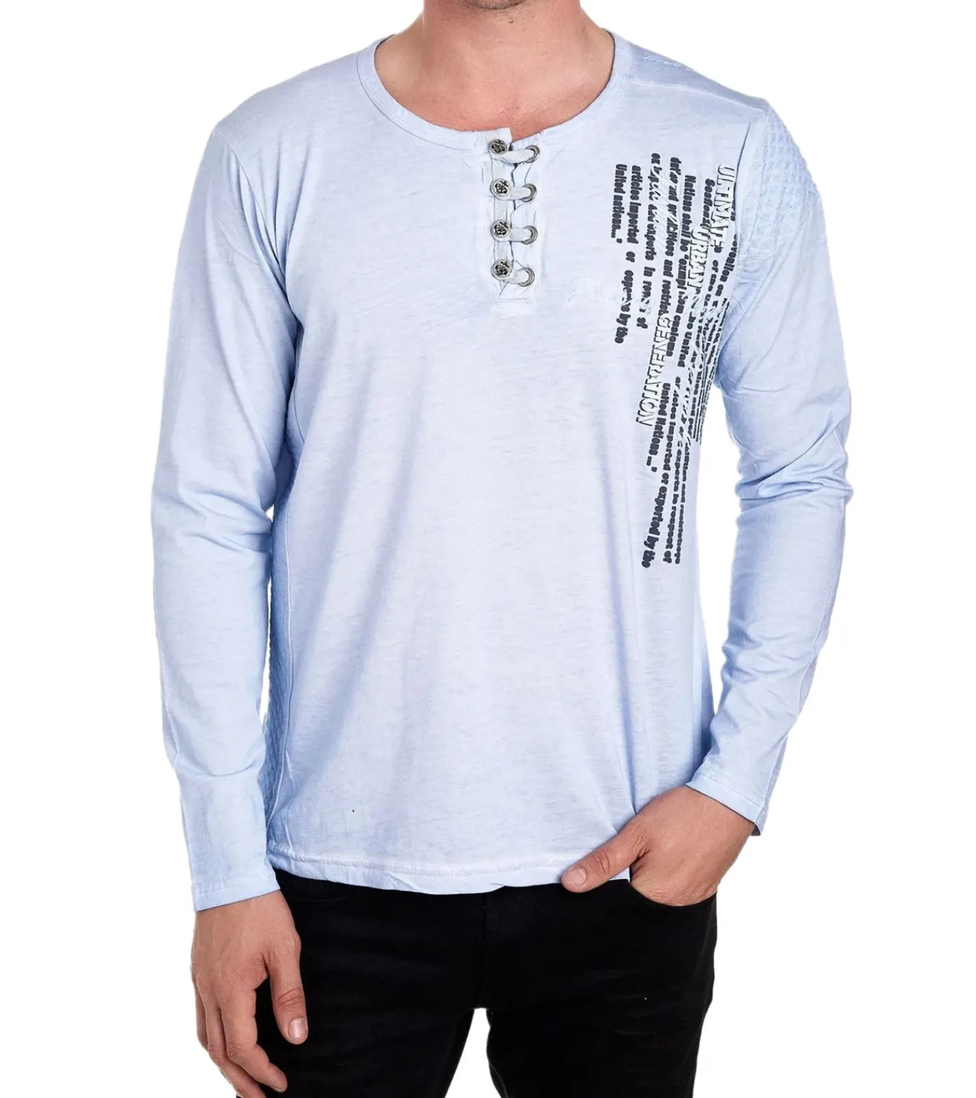Herren Langarm-Shirt mit schlichten Print und Knopfleiste Sommer-Baumwoll-Longsleeve Freizeit-Pullover R-10139