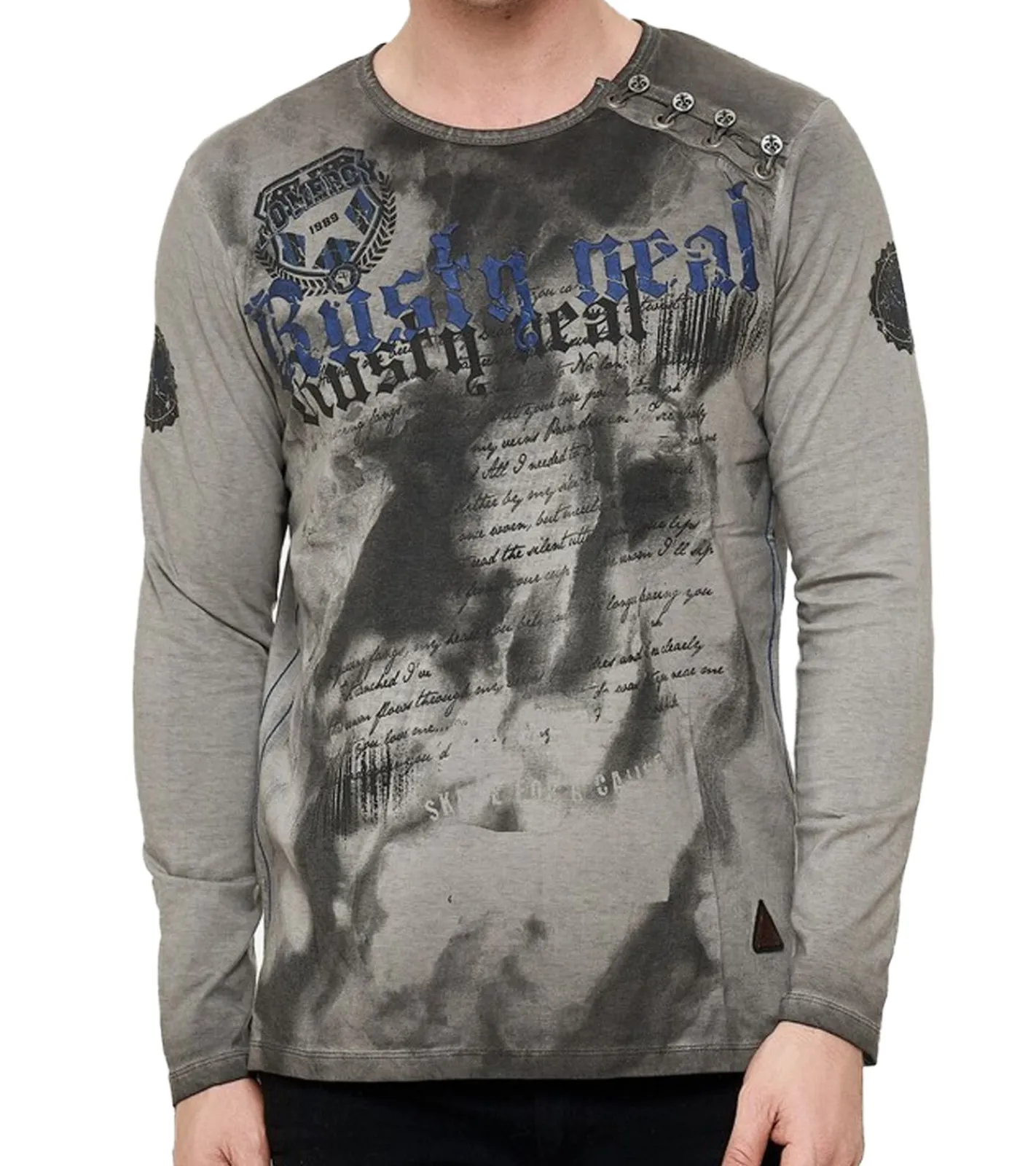Herren Longsleeve mit großem Schriftzug Baumwoll-Langarm-Shirt Sommer-Pullover Freizeit-Shirt R-10155 Dunkelgrau