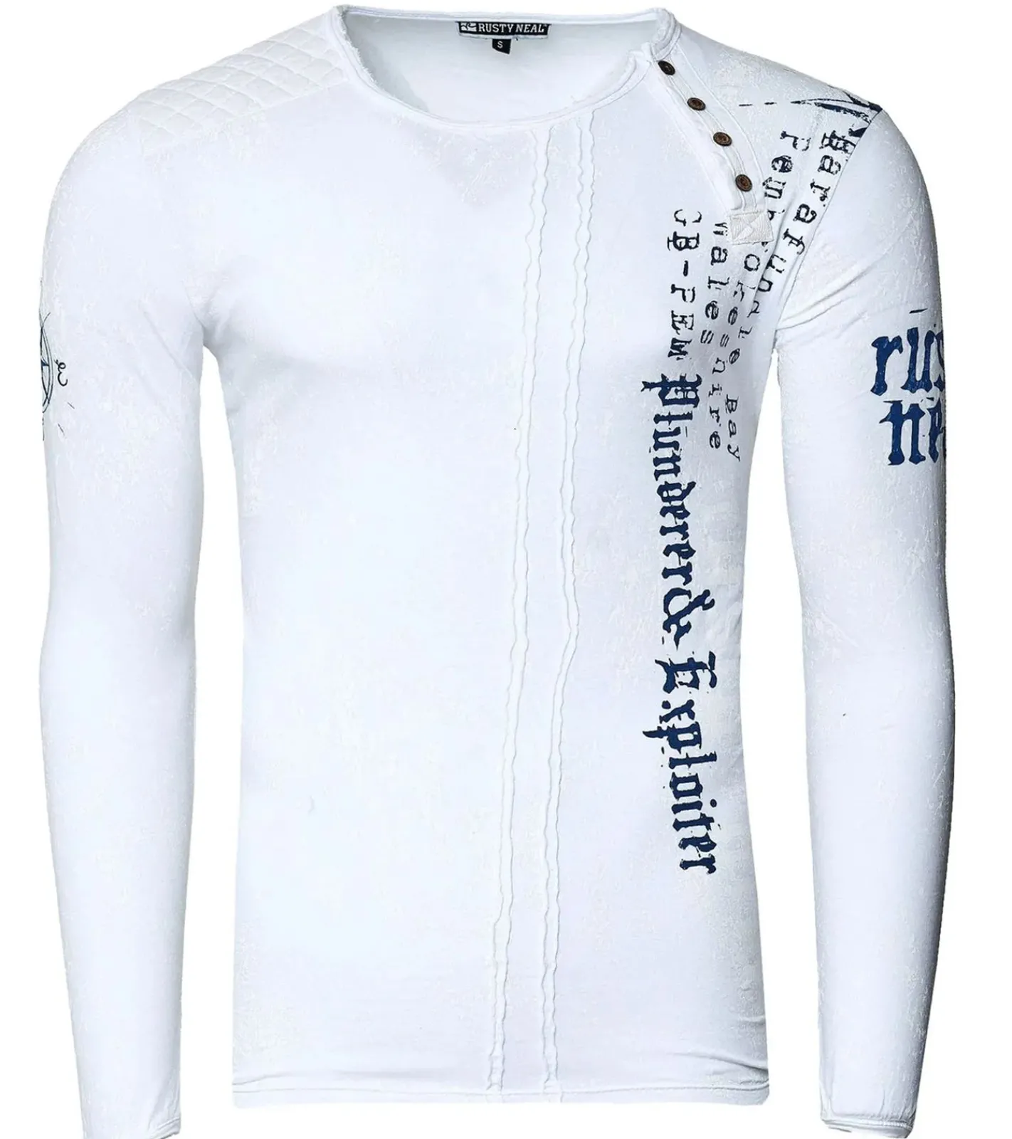 Herren Longsleeve mit Schriftzug Baumwoll-Langarm-Shirt Sommer-Pullover Freizeit-Shirt R-10153 Weiß