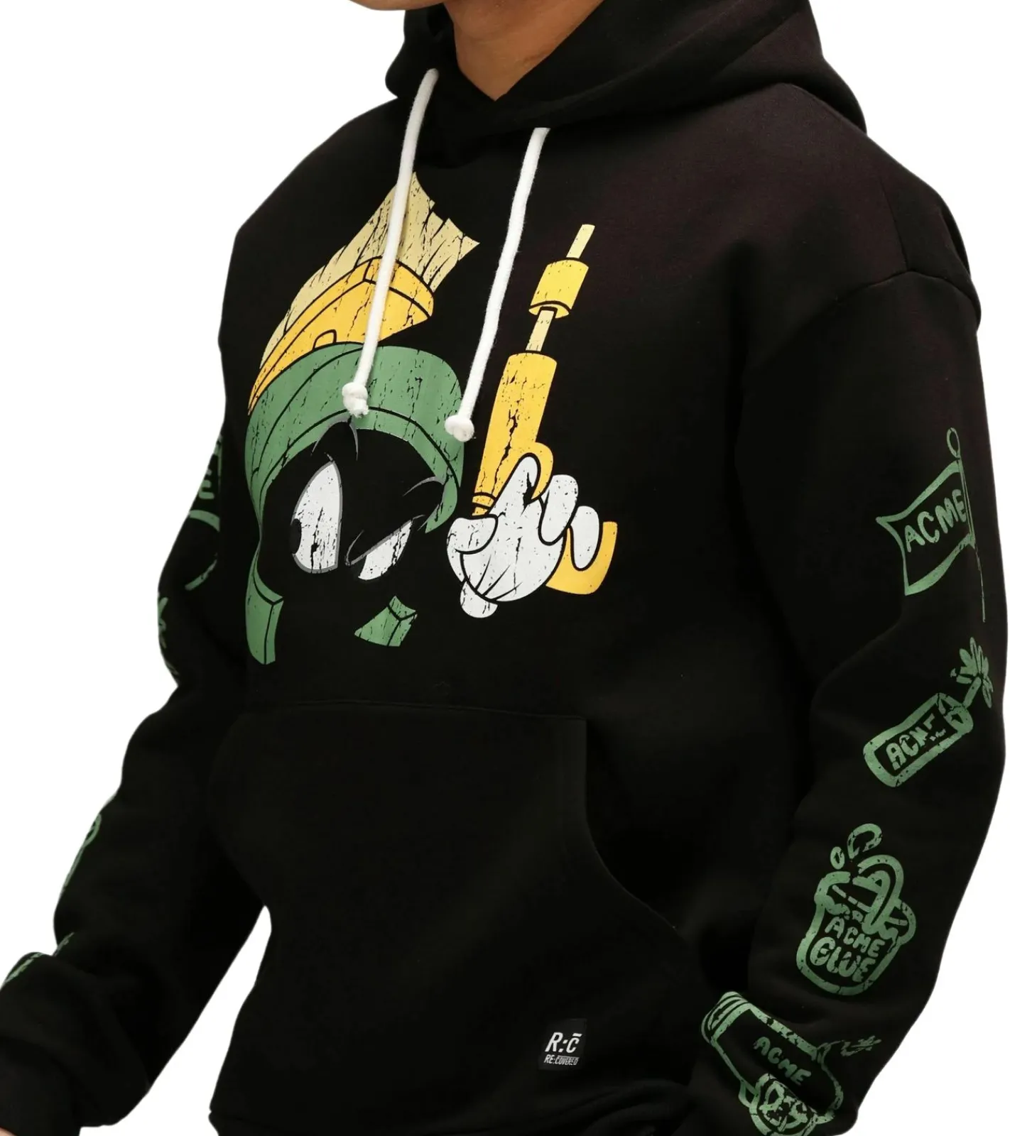RE:COVERED X LOONEY TUNES Herren Kapuzen-Pullover mit Martian Marvin-Print Baumwoll-Hoody Langarm-Shirt RCWARN549 Schwarz