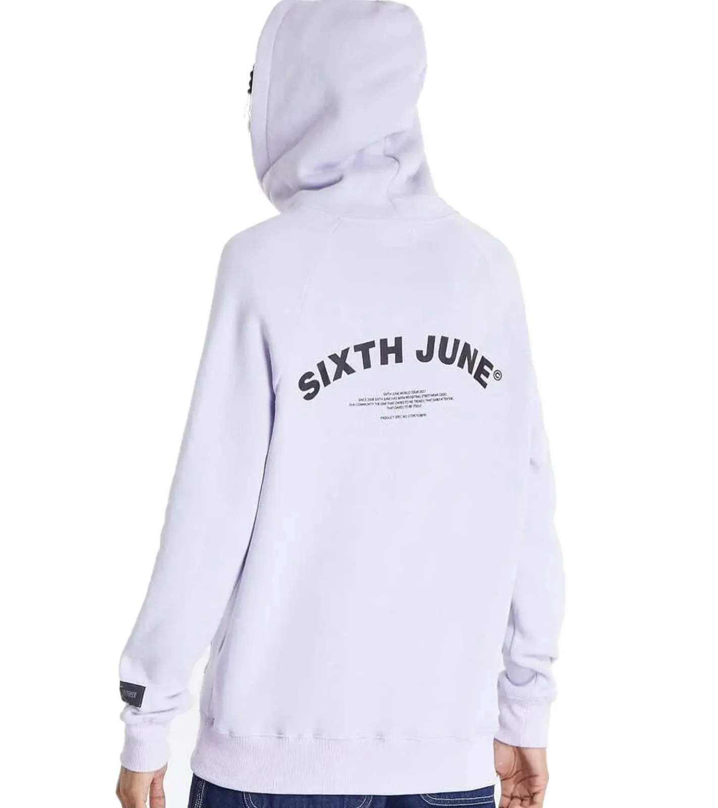 Sixth June Curved Hoodie Herren Baumwoll-Pullover mit Markenschriftzug Kapuzen-Pulli 22576 Flieder