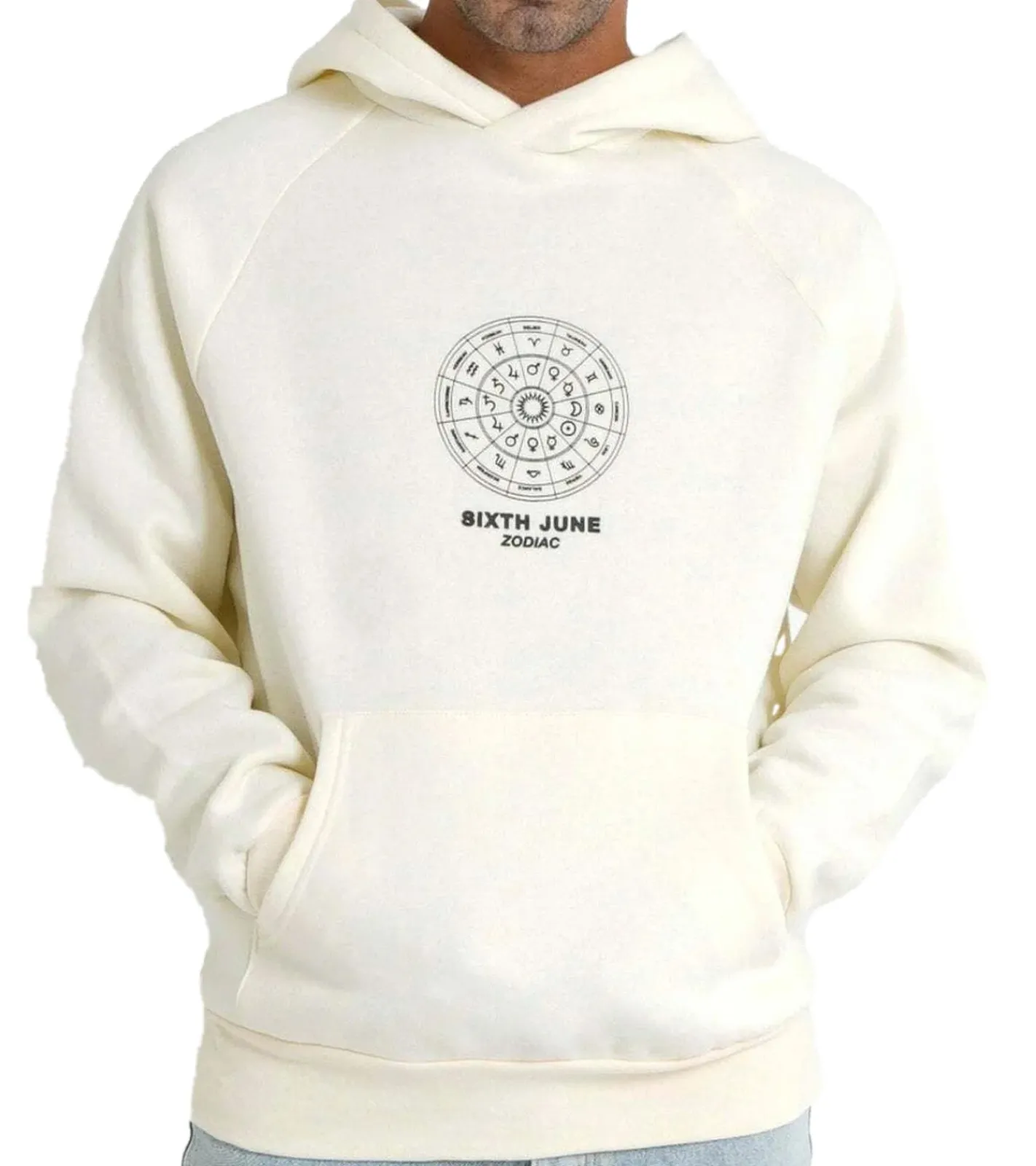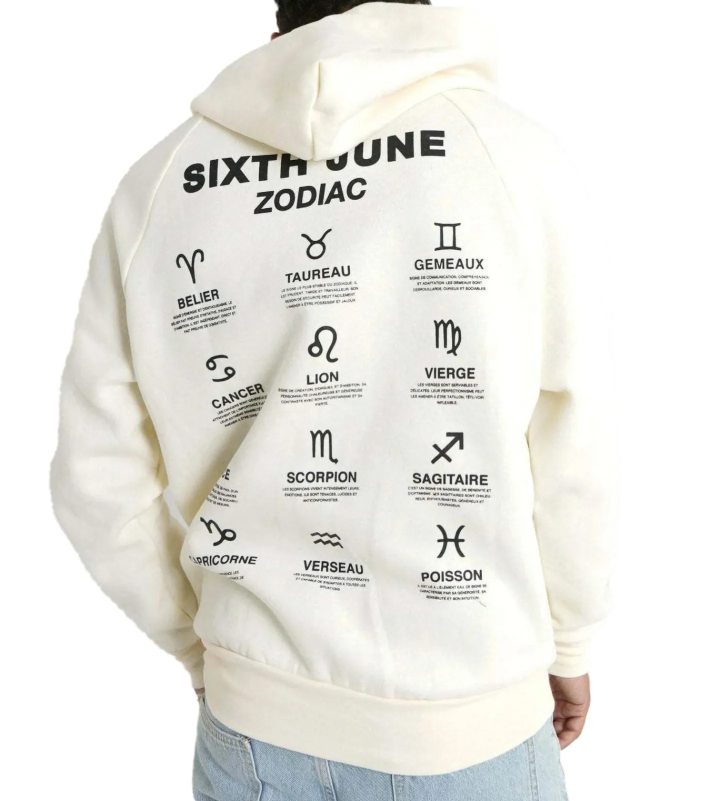 Sixth June Oversized Zodiac Signs Herren Kapuzen-Pullover Sweat-Hoodie mit Sternzeichen Print 22629 Hellbeige