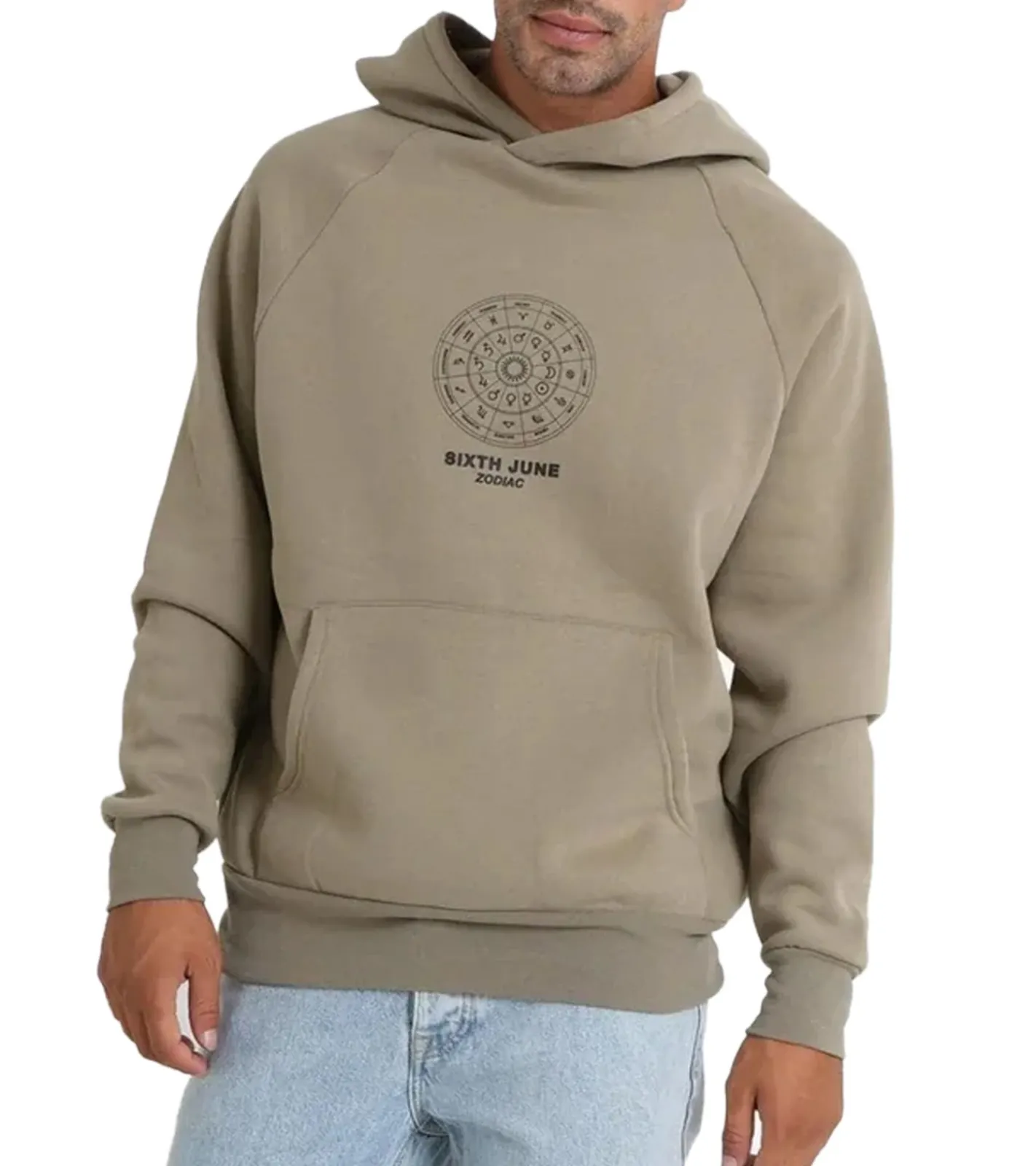 Sixth June Oversized Zodiac Signs Herren Kapuzen-Pullover Sweat-Hoodie mit Sternzeichen Print 22629 Khaki