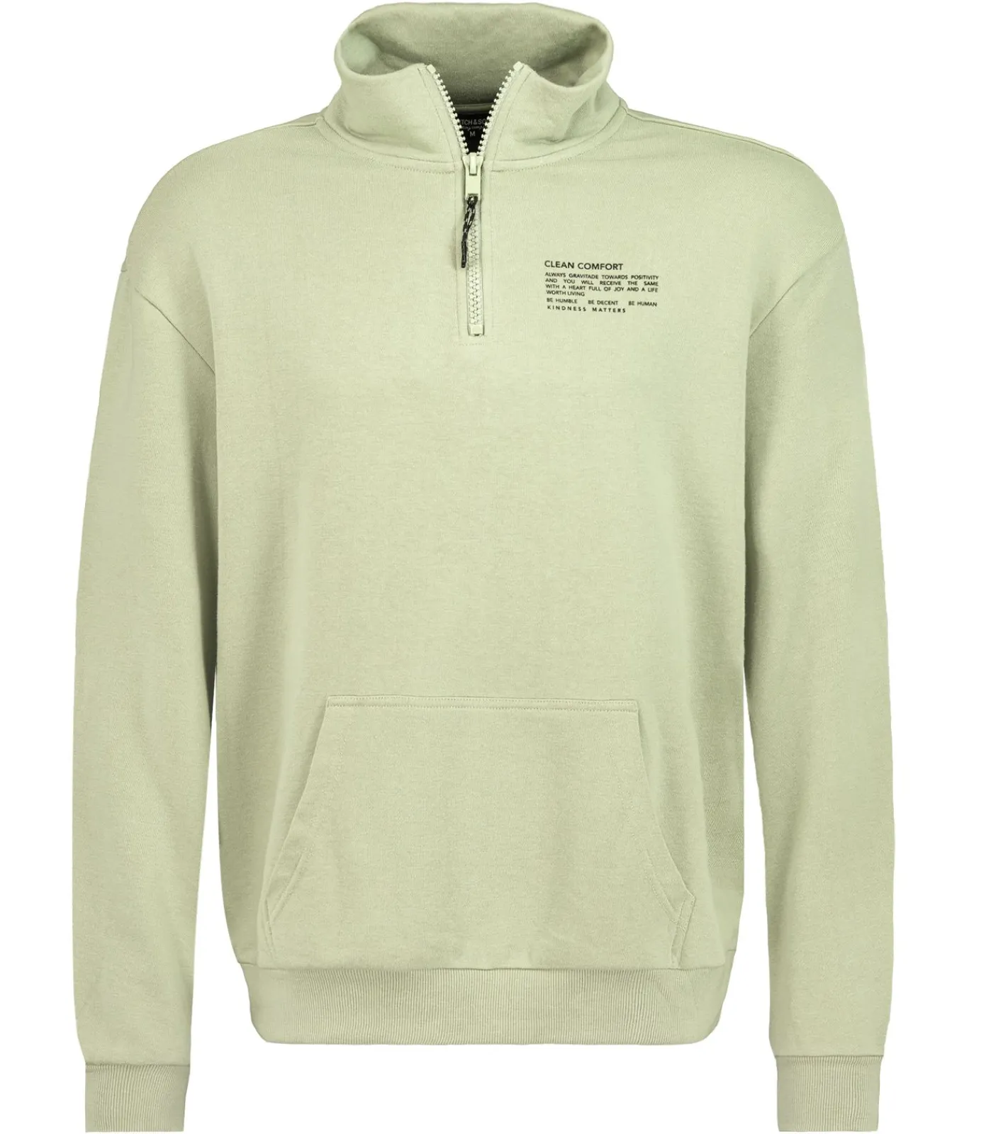 STITCH & SOUL Herren Sweater mit Reißverschluss moderner Troyer-Pullover mit Stehkragen Baumwoll-Pullover H10014C21404A 12200 Hellgrün