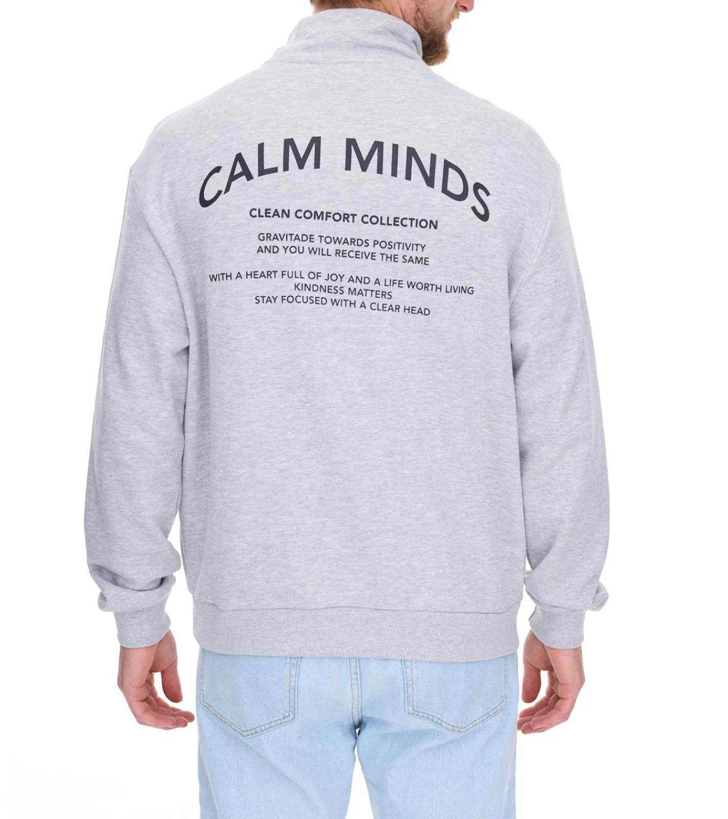 STITCH & SOUL Herren Sweater mit Reißverschluss moderner Troyer-Pullover mit Stehkragen Baumwoll-Pullover H10014C21404A 23200 Hellgrau