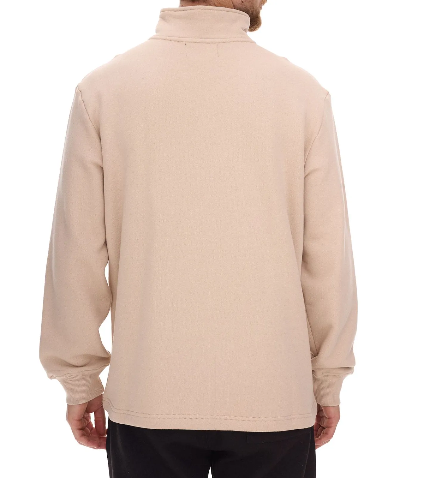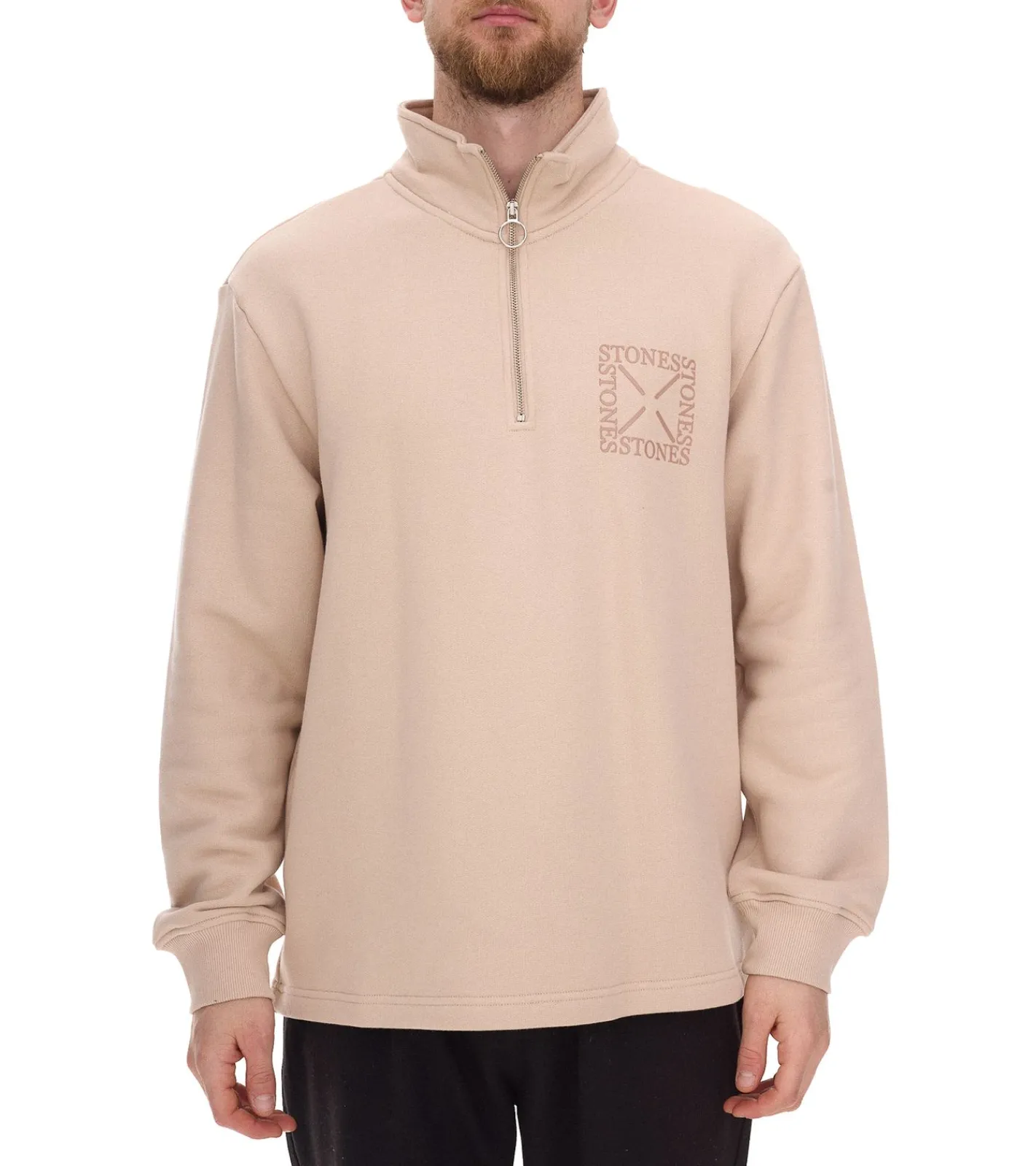 STONES Herren Sweater mit Reißverschluss moderner Troyer-Pullover mit Stehkragen Baumwoll-Pullover mit Logo-Stick Oversized-Fit Beige
