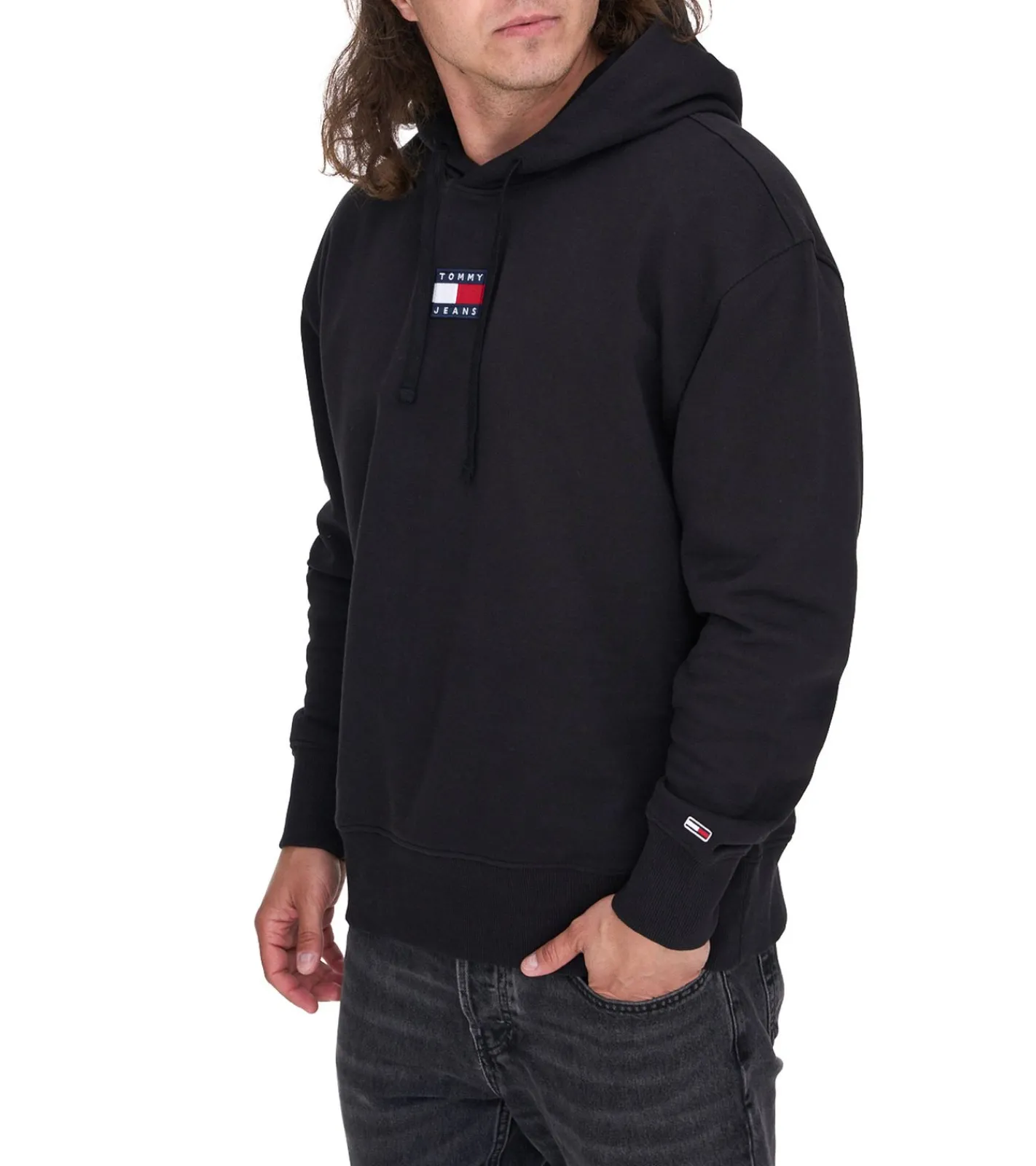 TOMMY JEANS Herren Kapuzen-Pullover Langarm-Shirt Baumwoll-Hoody Sweat-Pullover DM0DM16384 BDS Schwarz/Grün