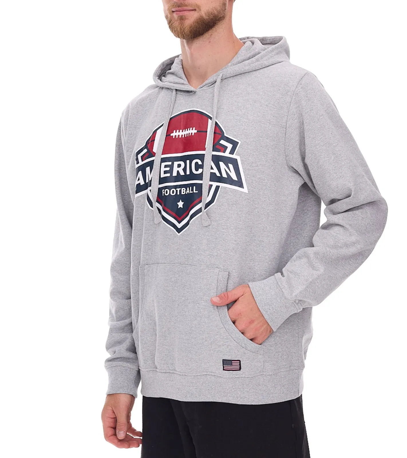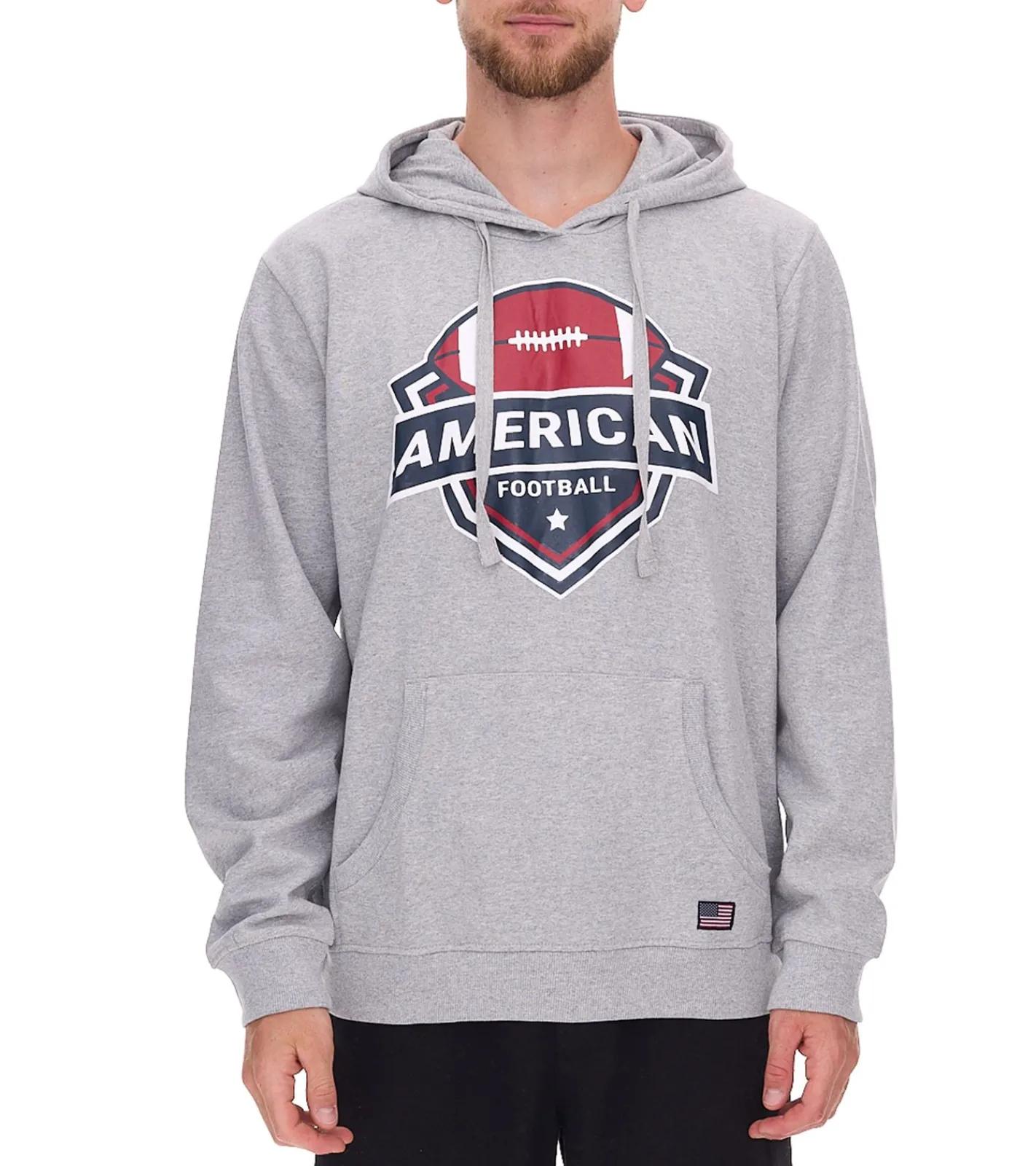 U.S. SPORT AMERICA Herren Hoodie mit Kapuze und großem Schriftzug Baumwoll-Hoodie Sommer-Pullover Freizeit-Hoodie Grau
