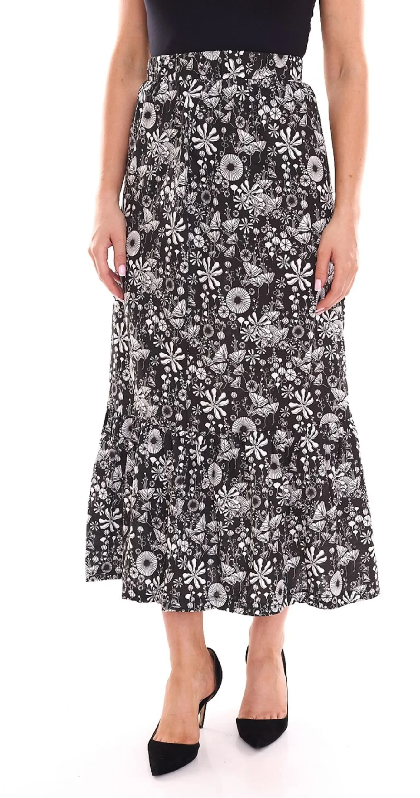 BOYSEN´S Jersey-Rock angesagter Damen Maxi-Rock mit Allover-Blumendruck 18995961 Schwarz/Weiß