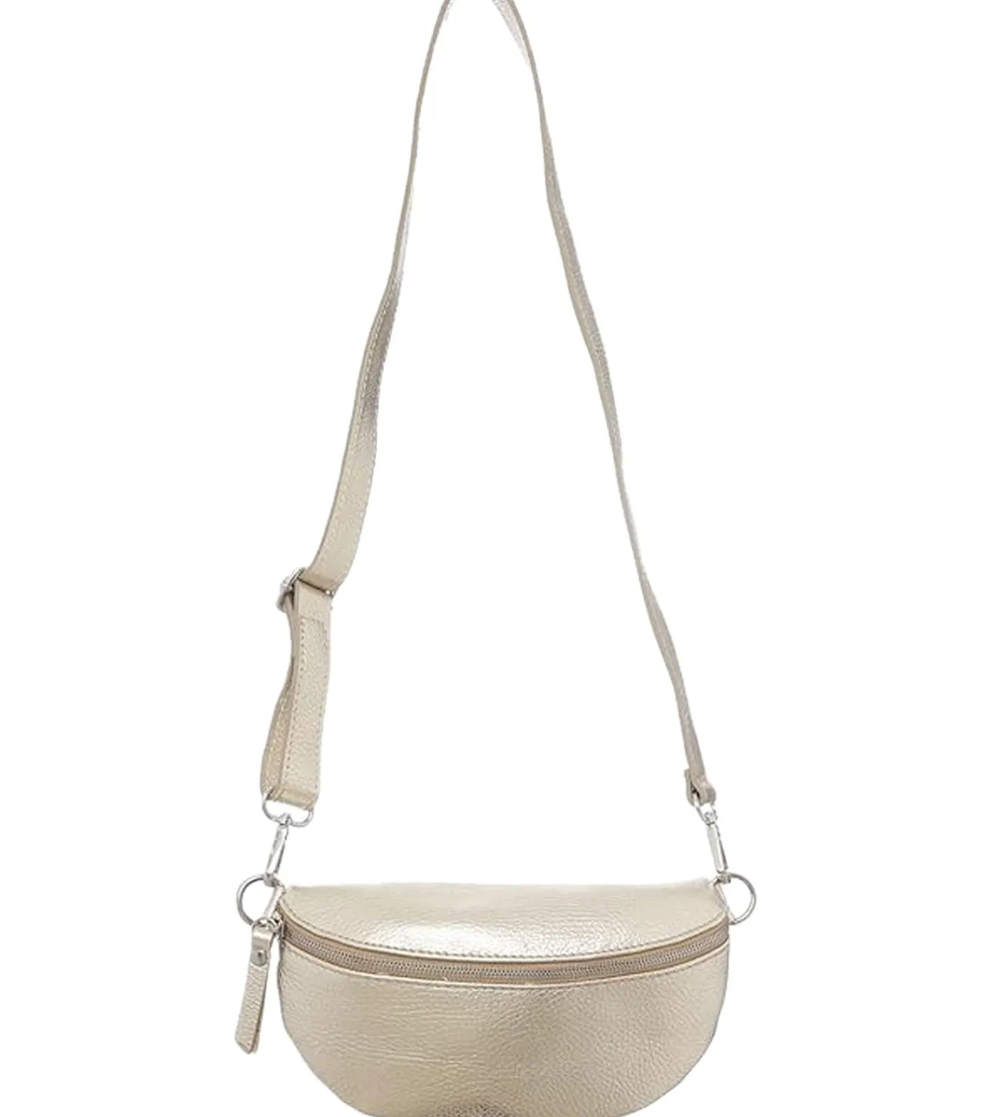 ZWILLINGSHERZ Damen Echtleder Cross Body Bag Umhängetasche mit abnehmbaren Schultergurt Bauchtasche modische Ausgeh-Tasche 1416C Gold