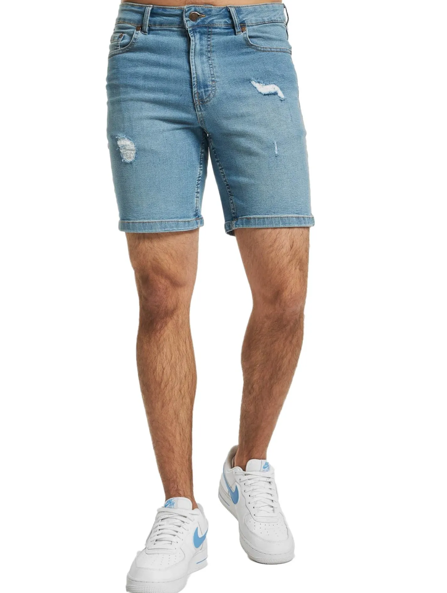 Denim Project Sync Herren Jeans Baumwoll Bermuda-Shorts mit Destroyed-Effekt Sommer-Hose DP-Coll2-004 424 Hellblau