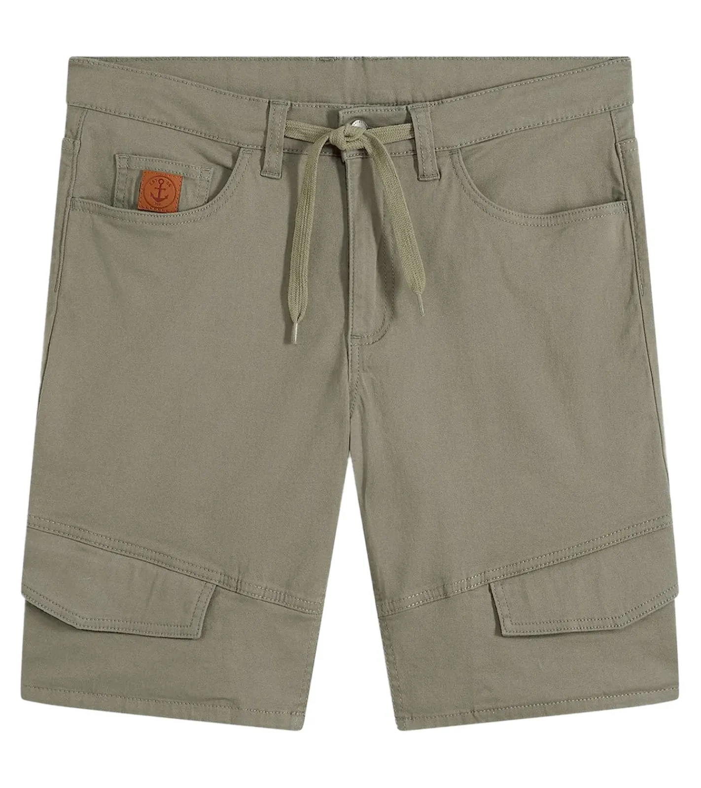 tolle Herren Stretch Cargo-Bermuda kurze Hose in Regular-Fit Shorts mit Bein-Taschen und Kordelzug 940901 Rauch-Oliv-Grün
