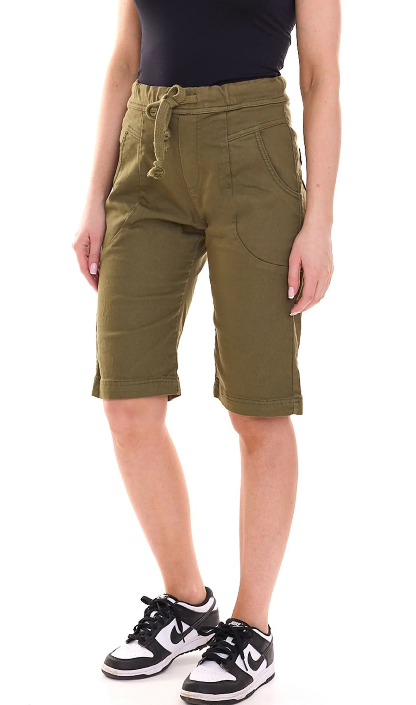PLEASE Damen Stoff-Shorts kurze Hose mit Bindeband Bermuda 45331929 Khaki