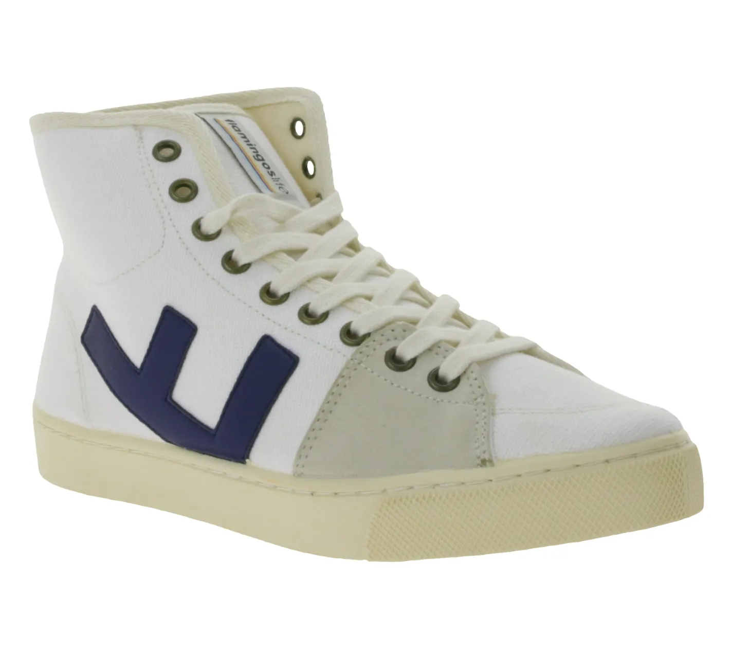 FLAMINGOS LIFE El Camino High-Top Sneaker faire- und nachhaltige City-Schuhe aus Canvas Made in Spain Weiß/Navy