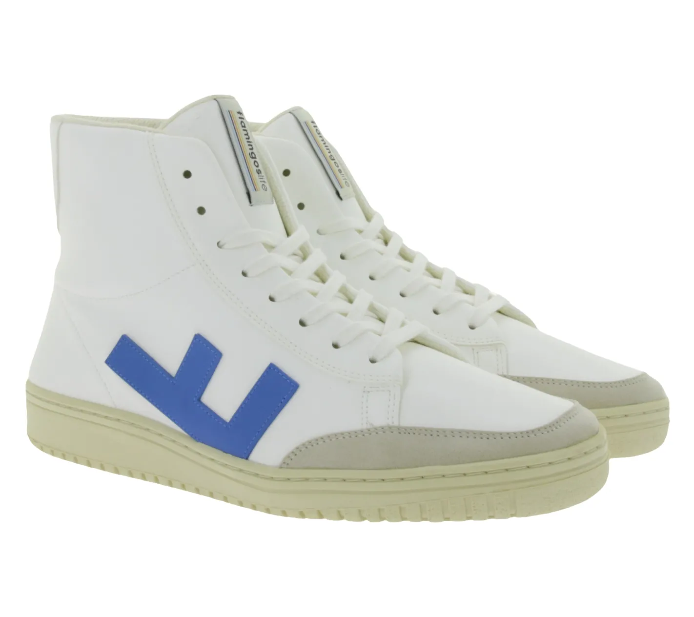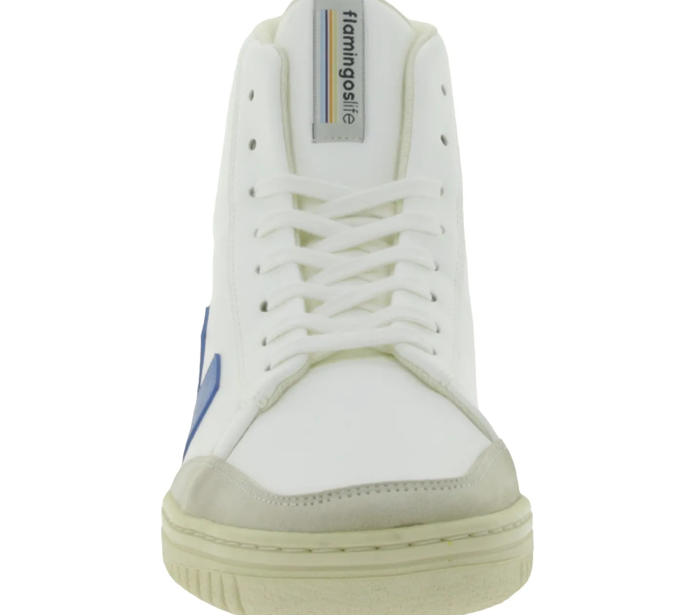 FLAMINGOS LIFE Old 80`s Sneaker faire- und nachhaltige High-Top Sneaker Knöchelhohe-Schuhe Made in Spain SS21O8WHIBLMO Weiß/Blau