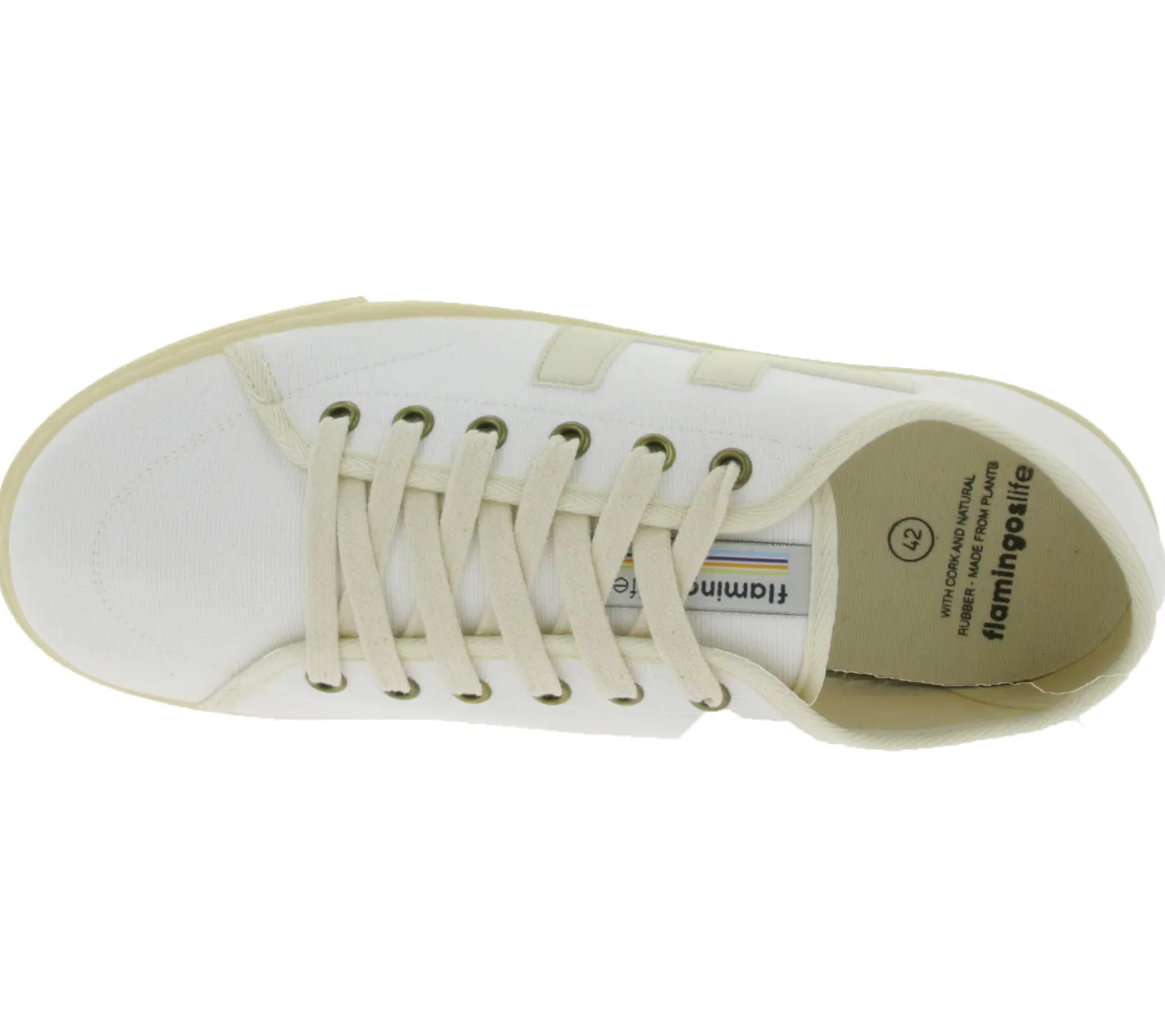 FLAMINGOS LIFE RANCHO ALL WHITE Freizeit-Schuhe nachhaltige Bio-Sneaker Schuhe mit Kork 100% Vegan MADE IN SPAIN SS21RAALLWH Weiß/Beige