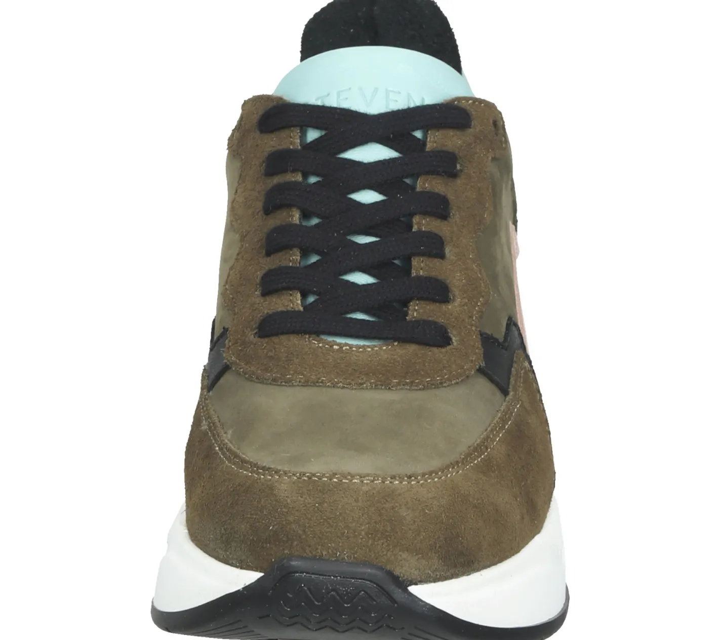 STEVEN NEW YORK Damen Echtleder-Schuhe Low-Top Sneaker mit Dämpfung Made in Portugal SNY11000296-03005-348 Khaki/Rosa/Blau