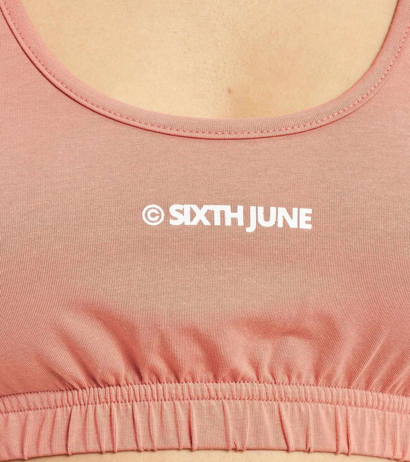 Sixth June Printed Logo Bra Damen BH mit elastischem Bund sportliches Top 32950 Lachs-Rosa