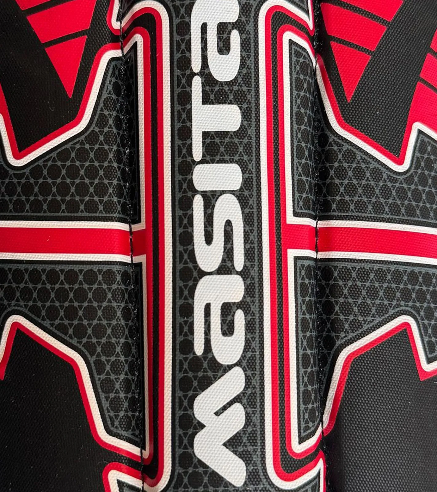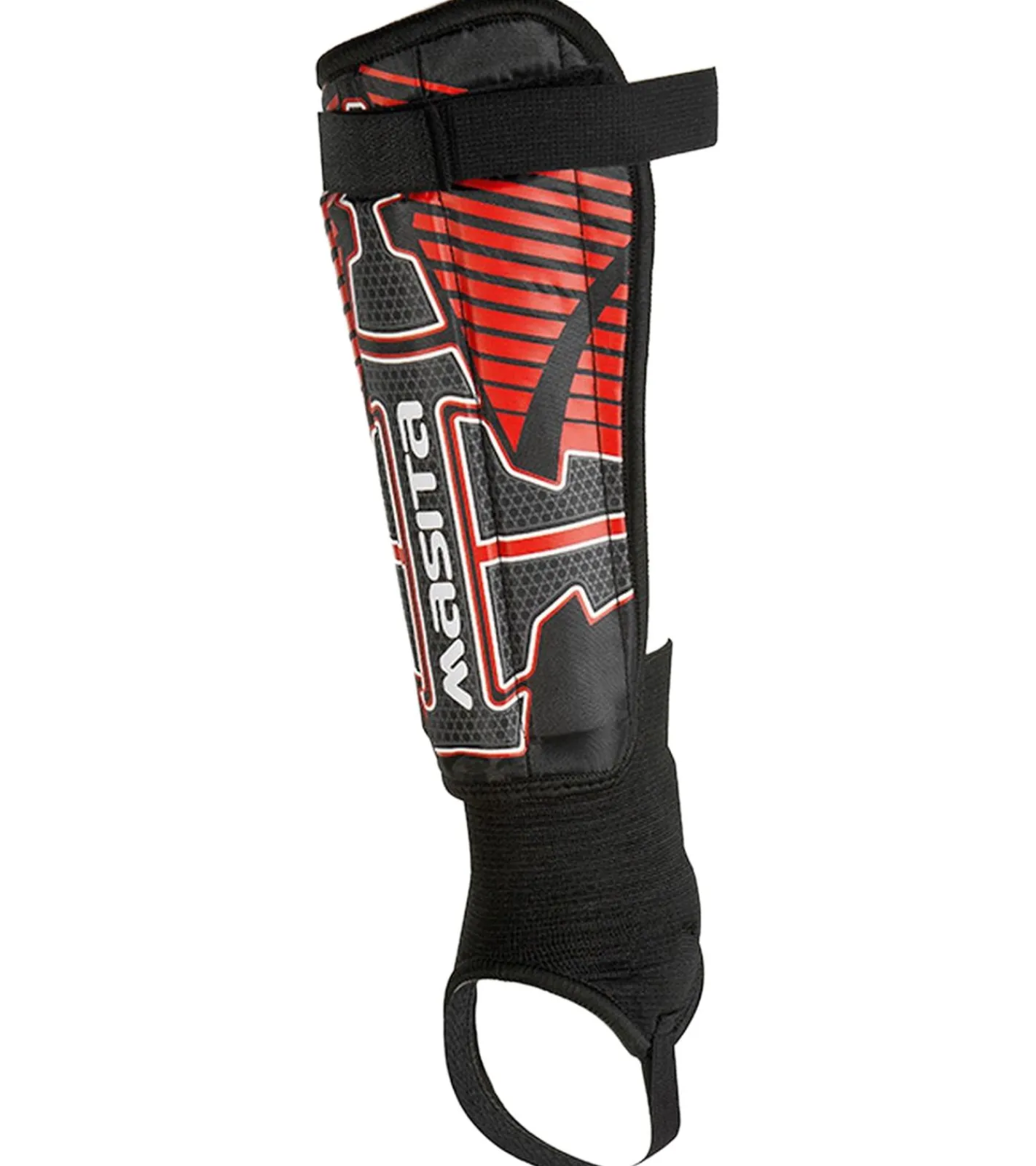 masita TEXAS Schienbeinschoner für Fußball mit Klettverschluss und EVA-Stoßdämpfer 7101 Schwarz/Rot/Weiß