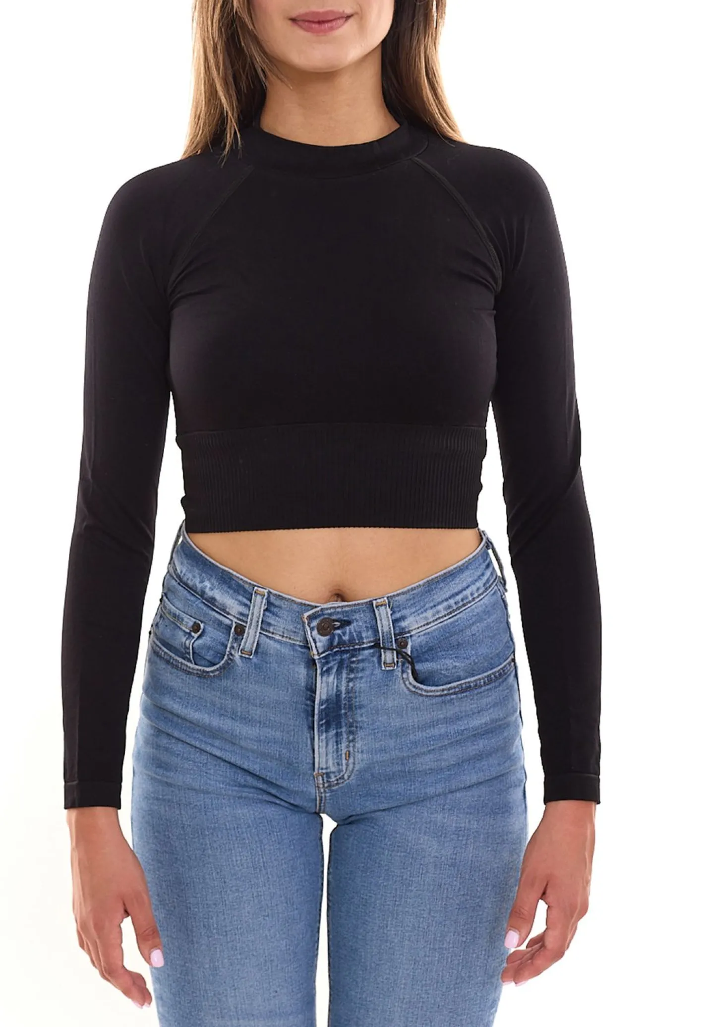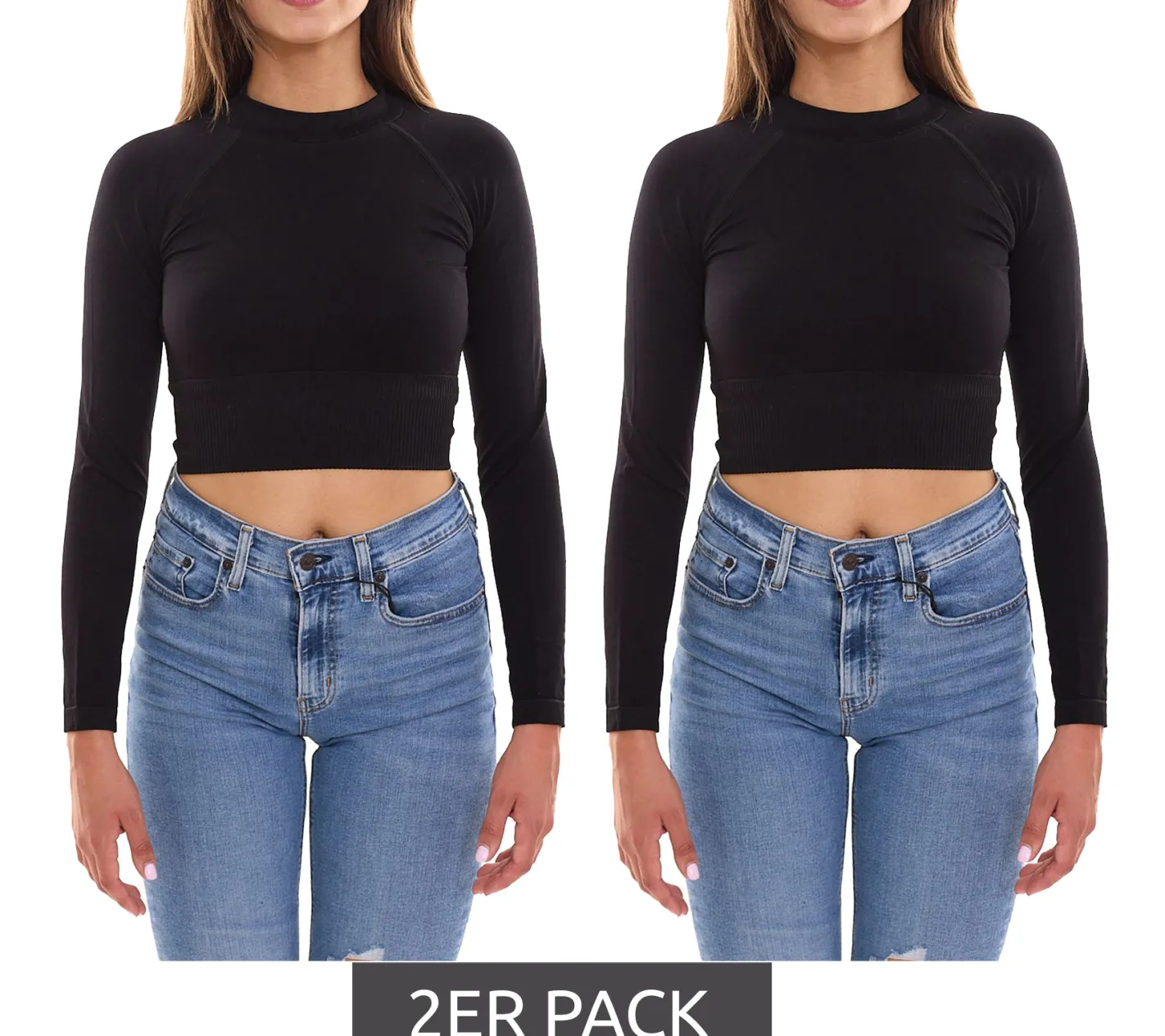 2er Sparpack FAYN SPORTS Longsleeve Crop Top Damen Sport-Shirt nahtloses Yoga-Shirt 47005506 Schwarz