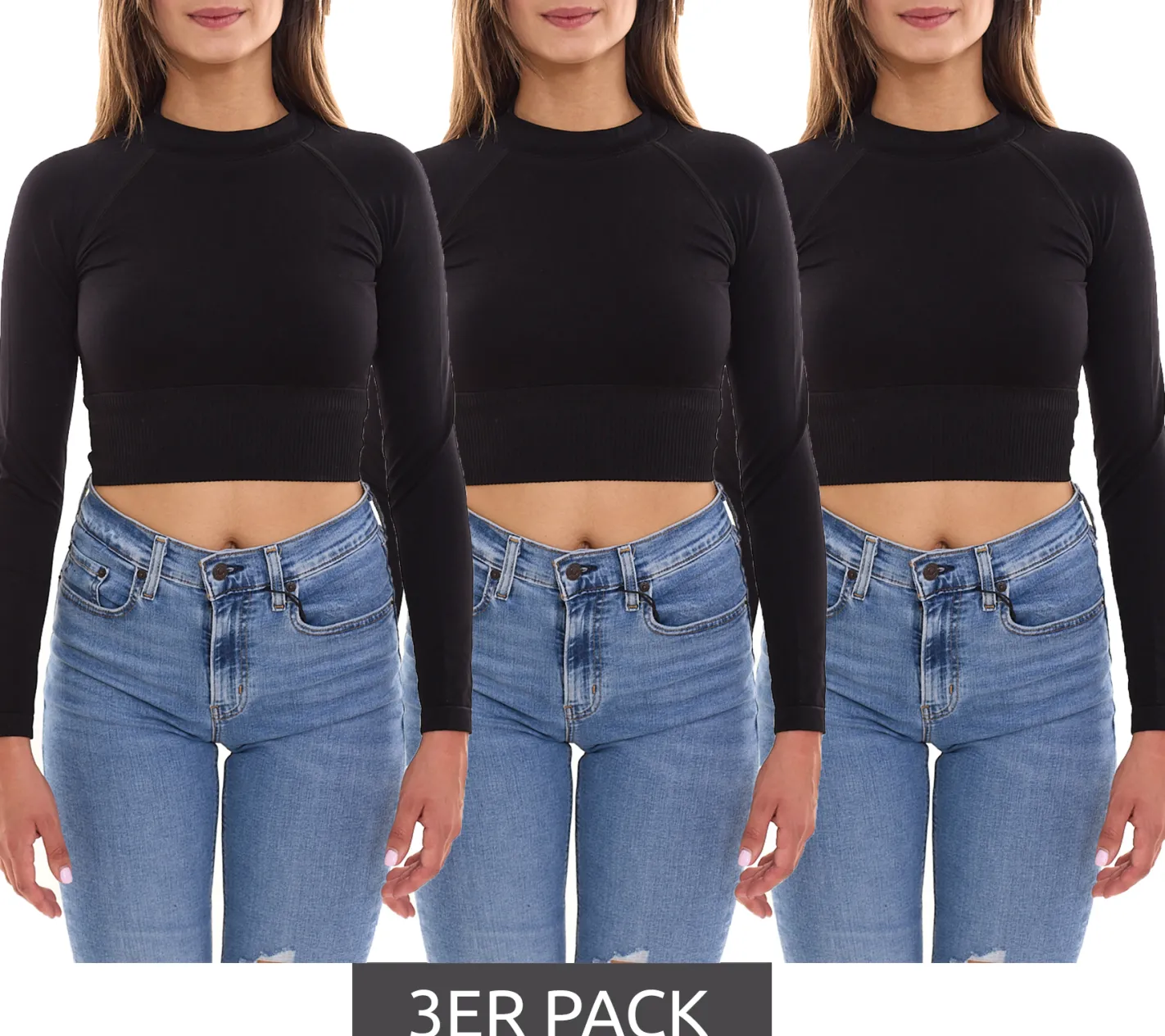 3er Sparpack FAYN SPORTS Longsleeve Crop Top Damen Sport-Shirt nahtloses Yoga-Shirt 47005506 Schwarz