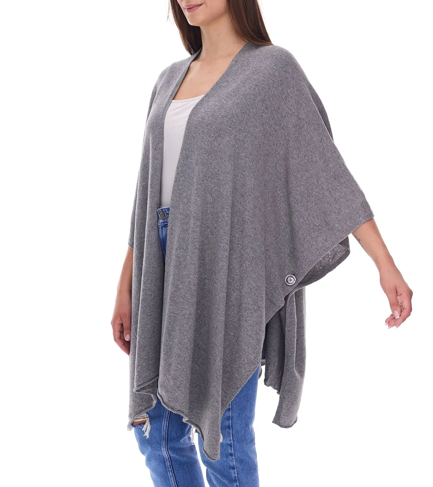 ZWILLINGSHERZ Damen Poncho mit Kaschmir hochwertiges Cape Tunika mit Ärmeln 8029P Grau
