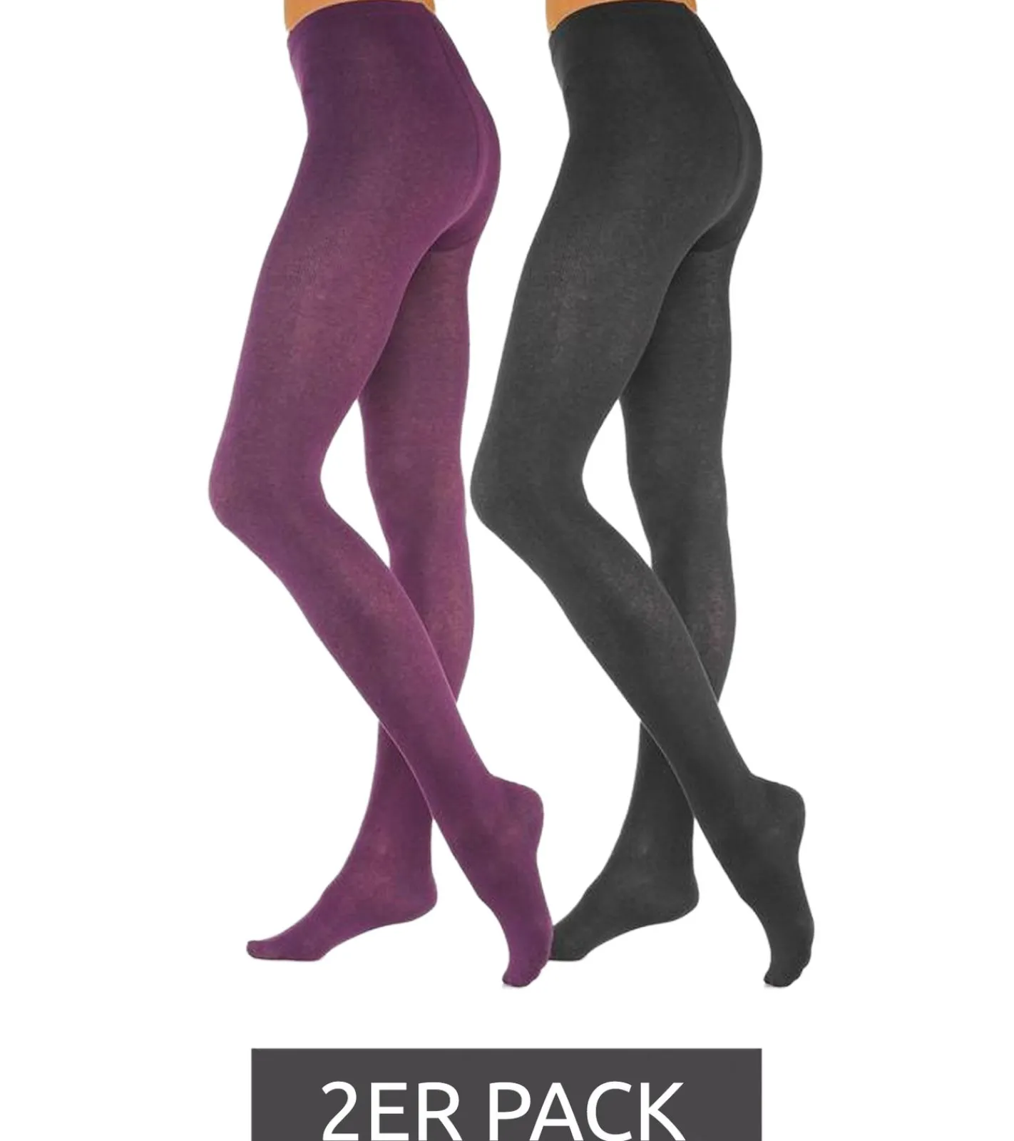 2er Pack ROGO X LAVANA Damen Baumwoll-Strumpfhose bequeme Strumpf-Hose 542819 Schwarz/Grau oder Schwarz/Lila