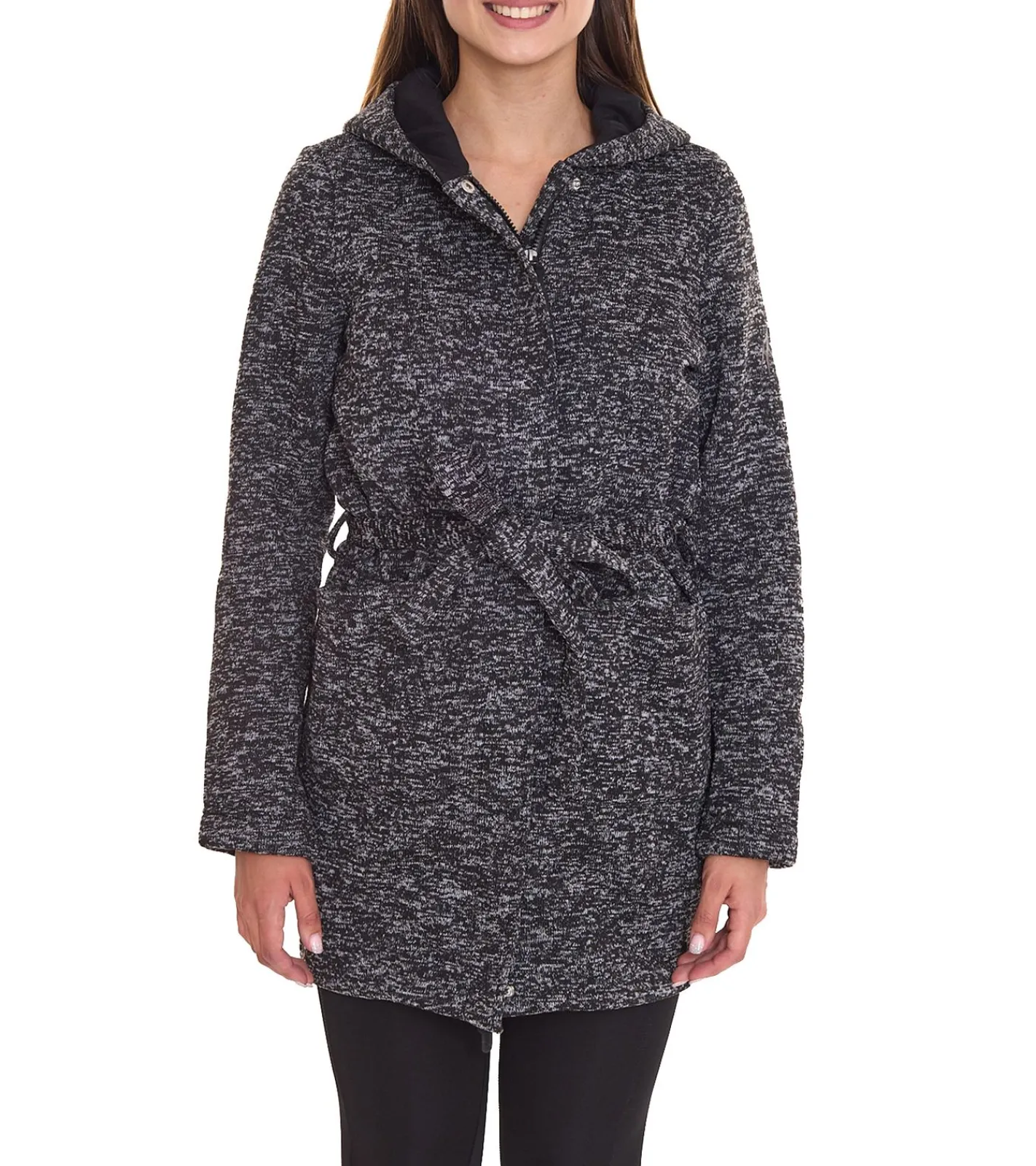 ALPENBLITZ Damen Fleece-Jacke mit Binde-Gürtel bequeme Übergangs-Jacke aus weichem Strickfleece 36348765 Schwarz/Grau