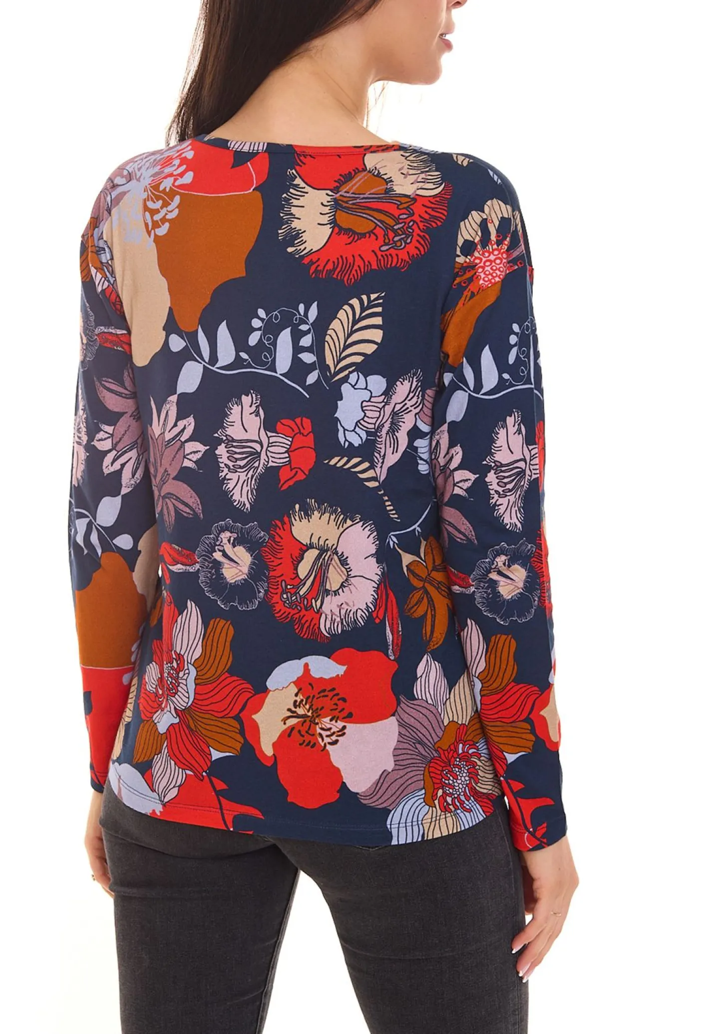 BOYSEN´S Damen Druck-Shirt mit Allover-Print Langarm-Bluse 39077013 Grau/Orange