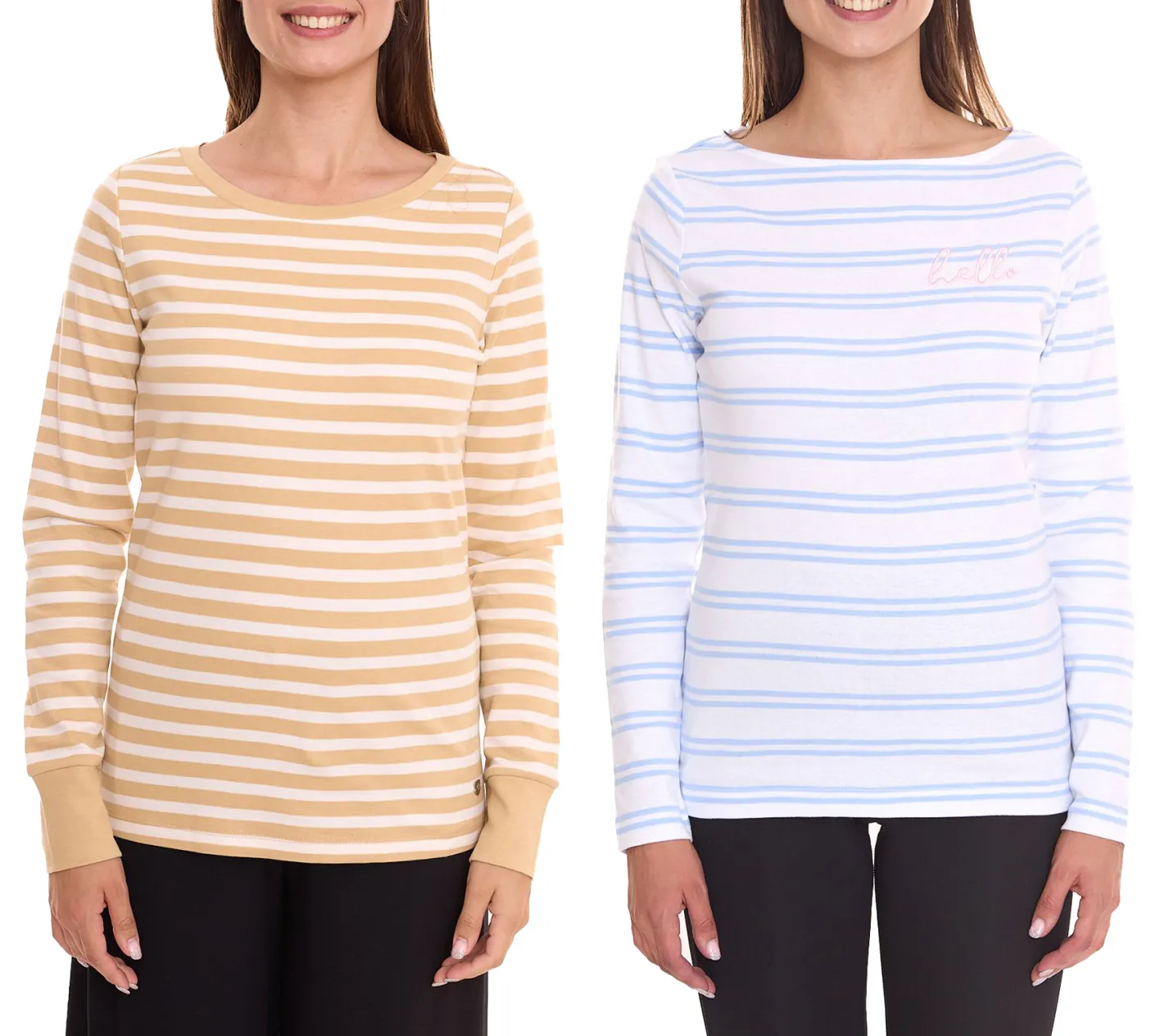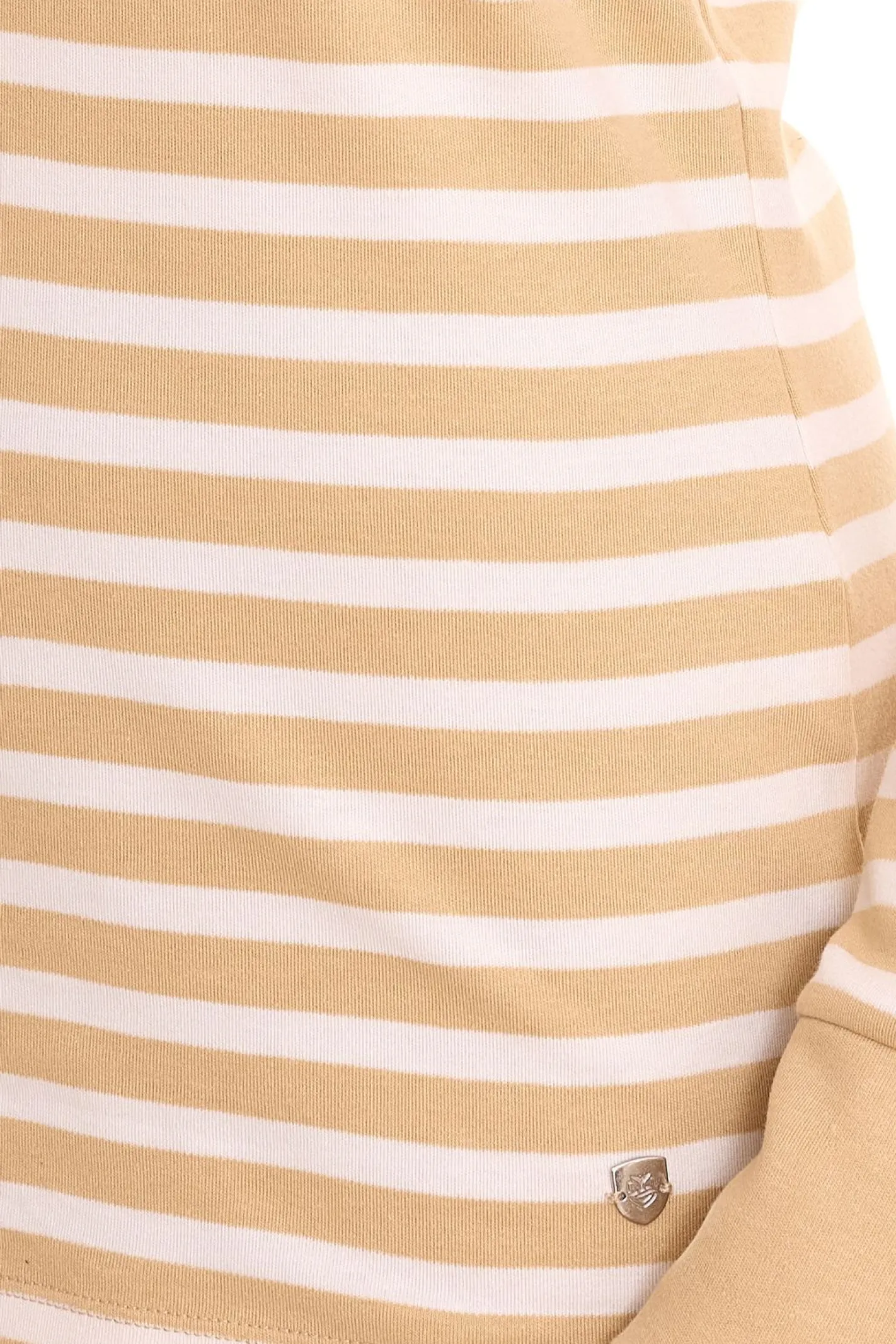 DELMAO Damen Langarm-Shirt gestreiftes Baumwoll-Sweatshirt Blau/Weiß oder Beige/Weiß