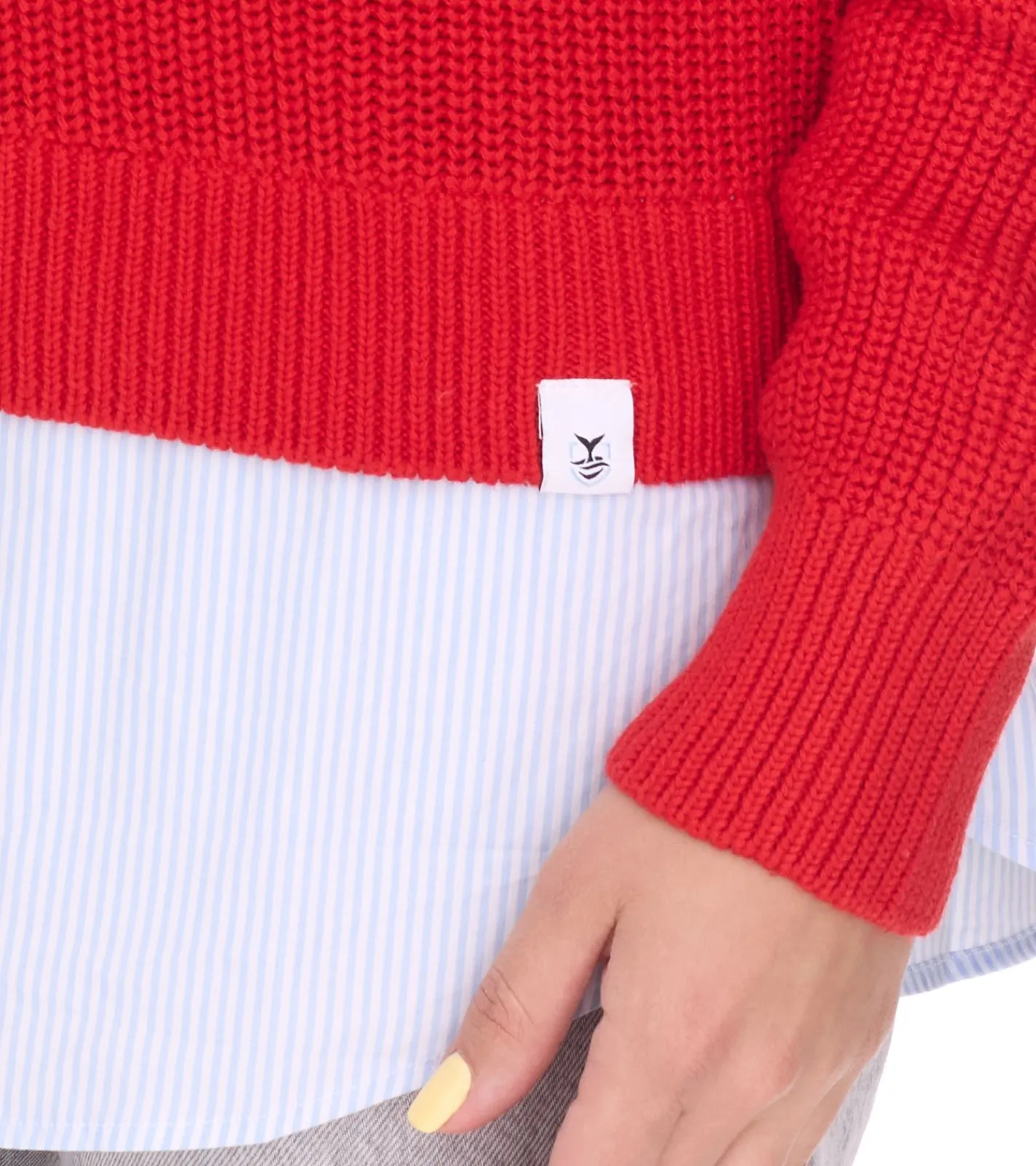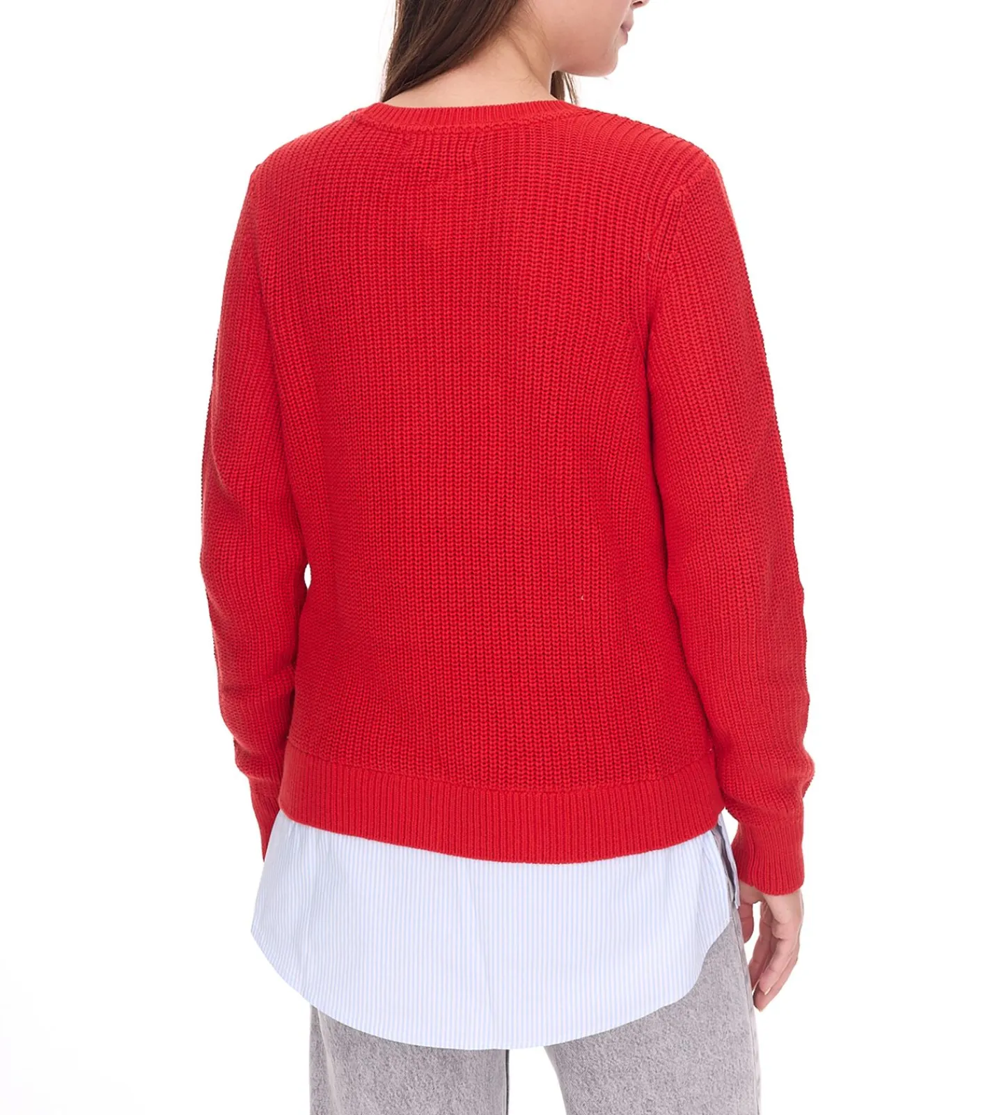DELMAO Damen Stick-Pullover mit Blusensaum Langarm-Sweater im 2in1-Look 44176718 Rot