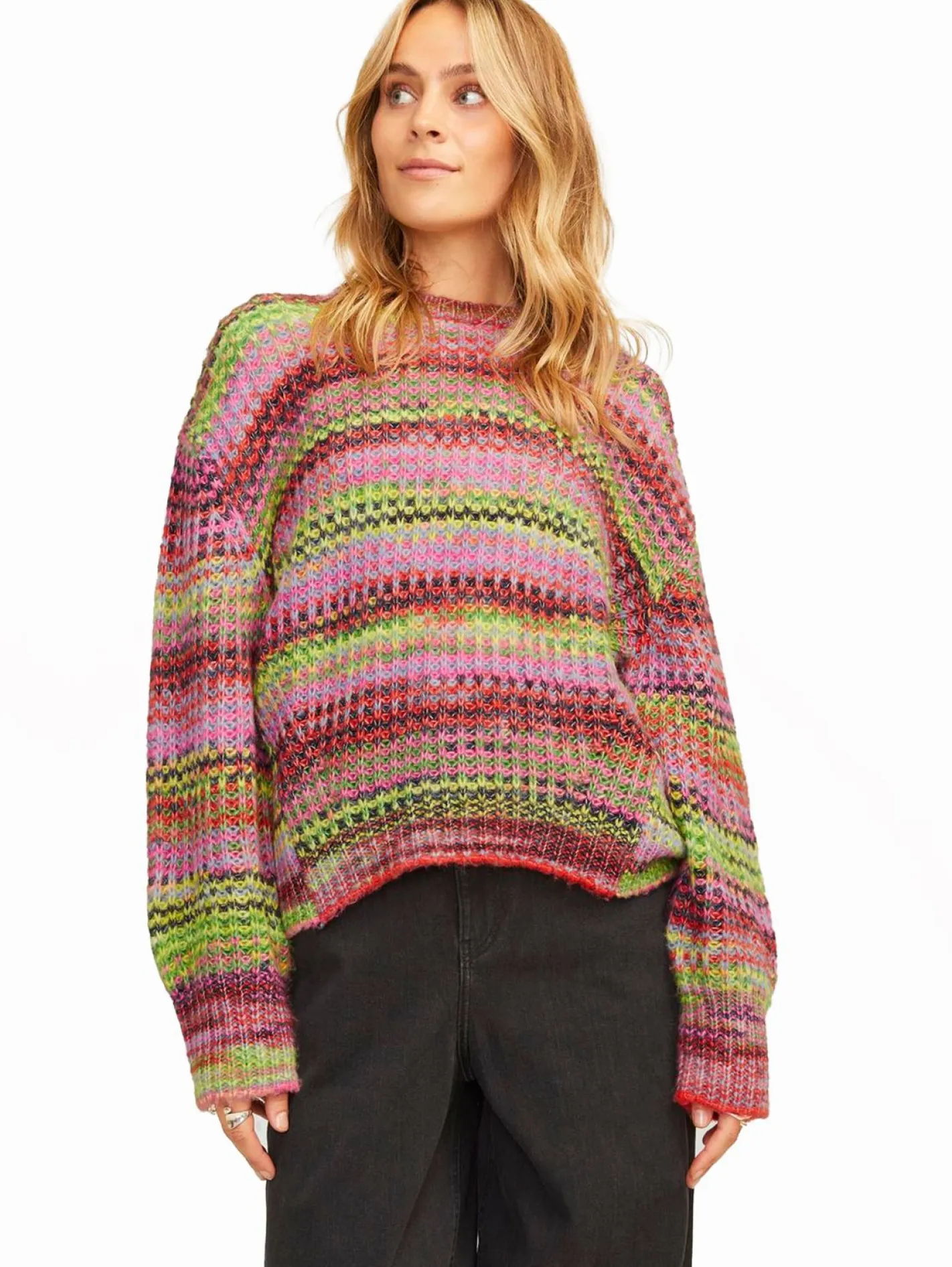JJXX Simone Space Dye Rundhalspullover feurig rot/multi space dye