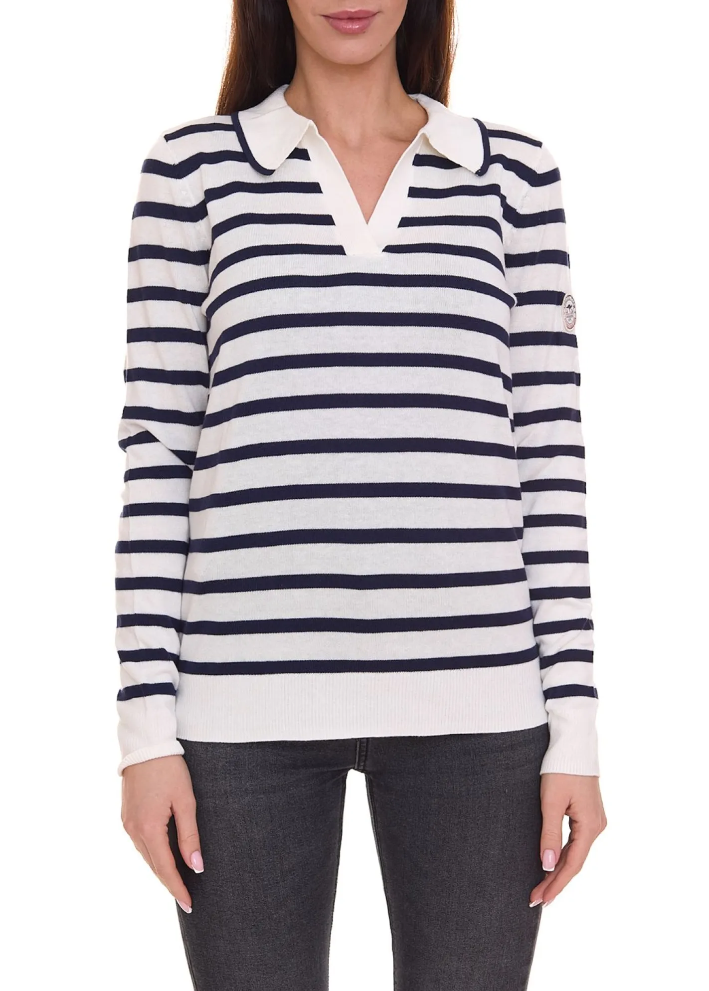 KangaROOS Damen Pullover modischer Feinstrick-Pullover mit V-Ausschnitt 72878349 Weiß/Blau