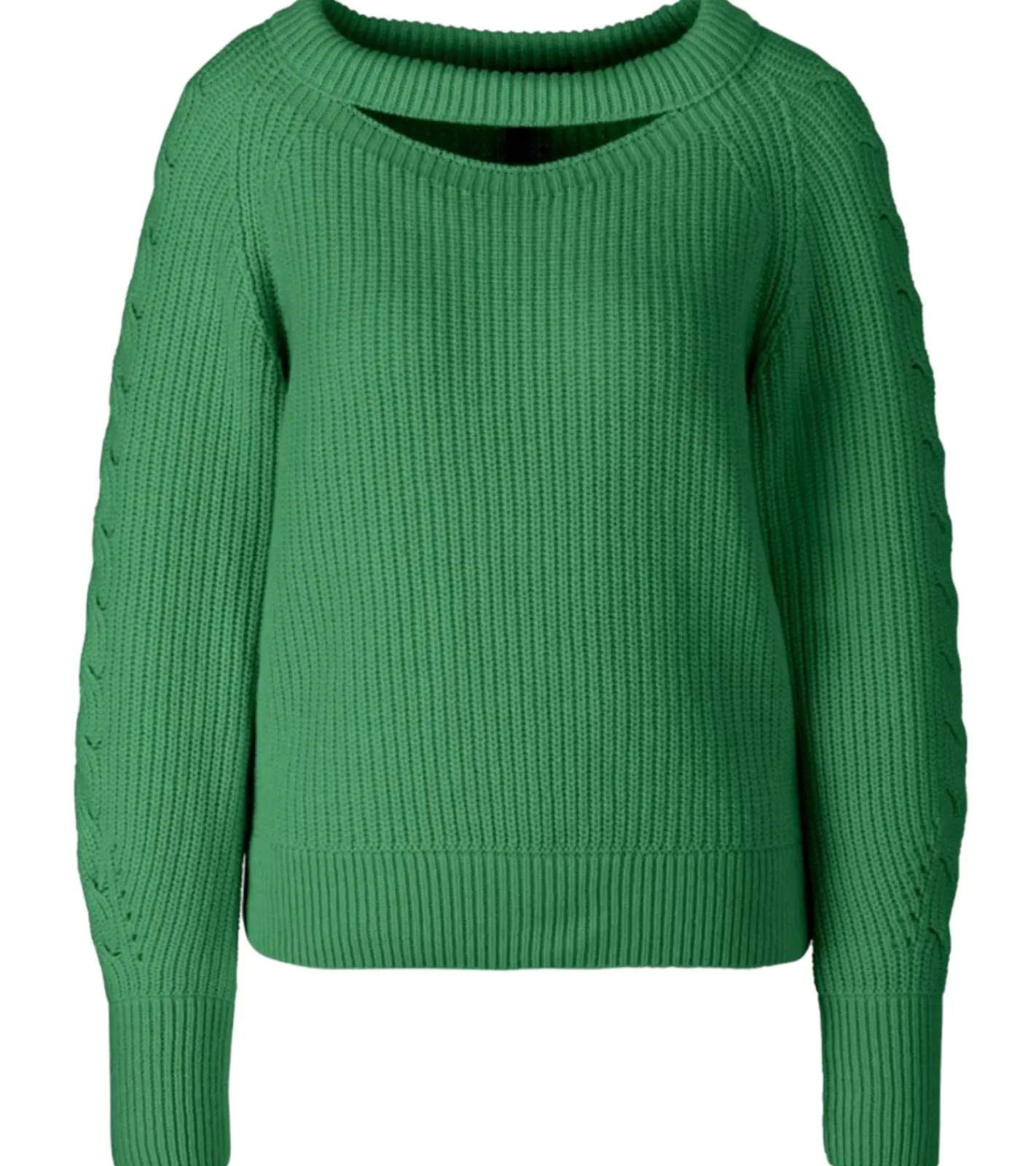 - Die Ärmel sind mit einem verspielten Zopfmuster versehen