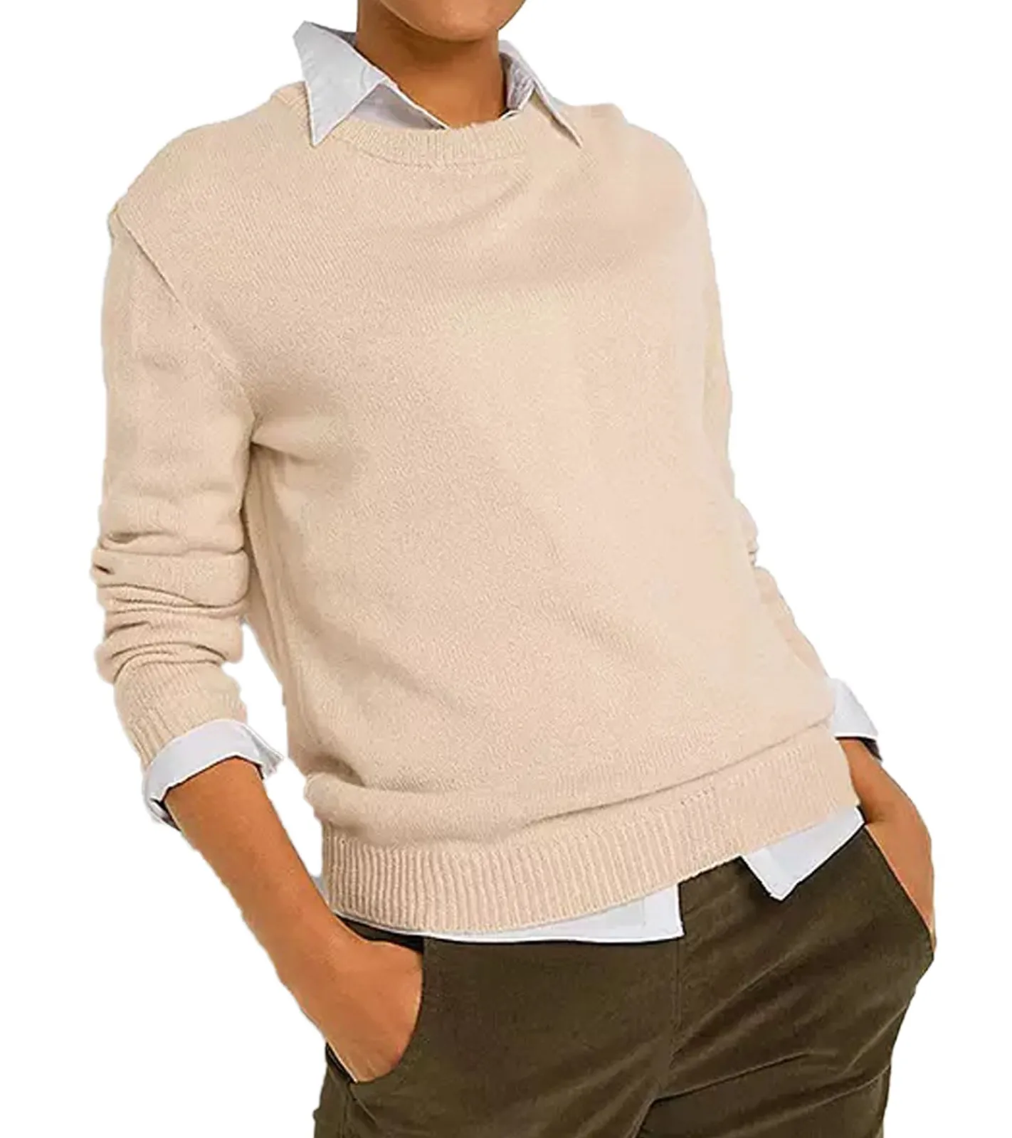 Damen Strick-Pullover mit Rundhals-Ausschnitt Alltags-Pullover Sweater 909761 Beige