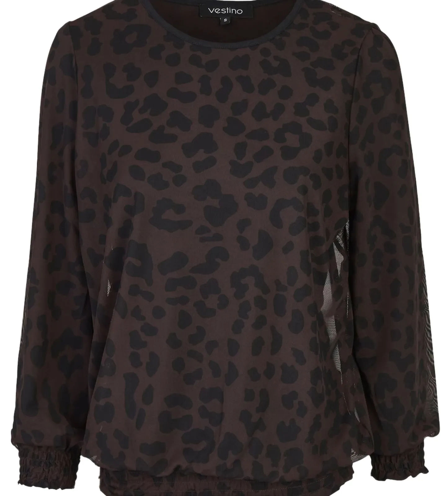 vestino Damen Pullover mit Leo-Print Langarm-Shirt Mesh-Pullover 900309 Braun
