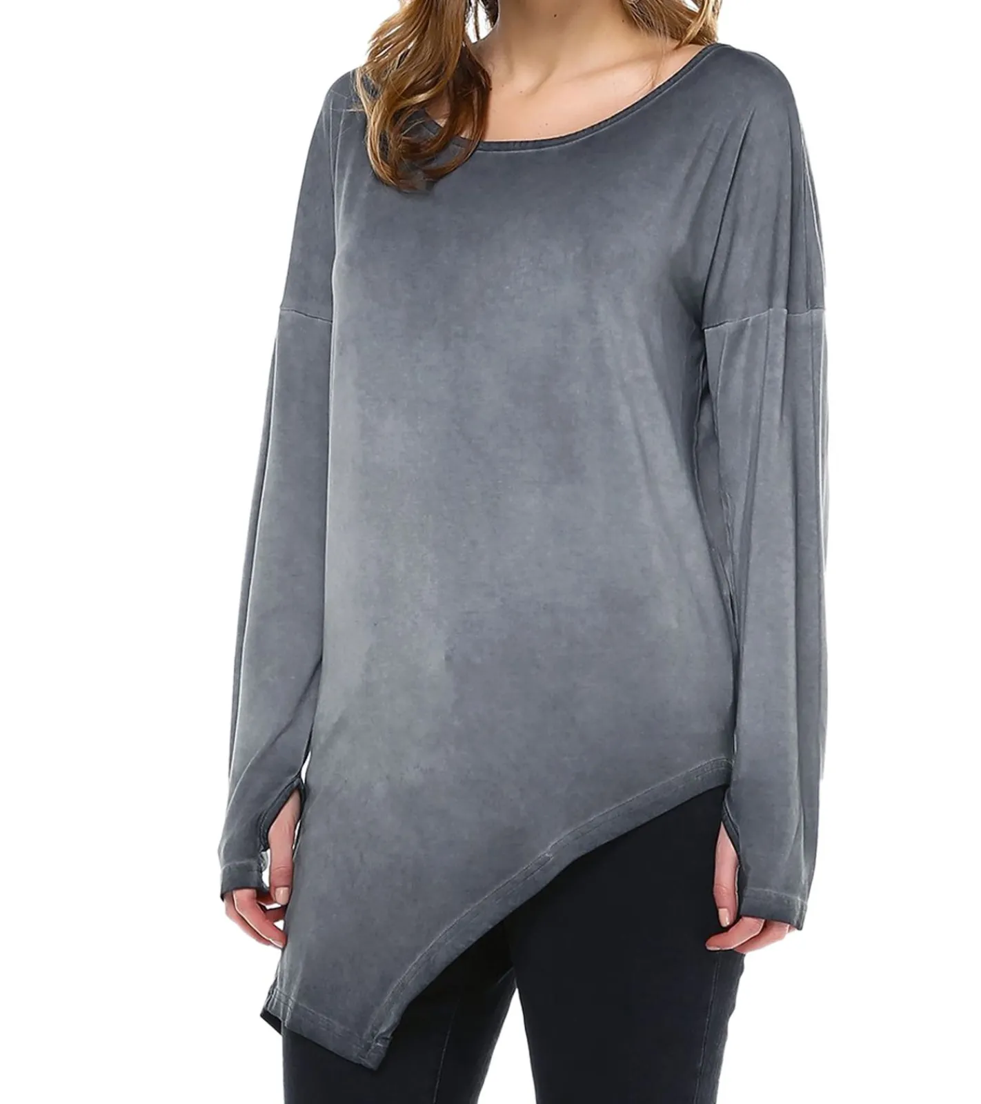 ROCKUPY Damen Longsleeve asymmetrisches Langarm-Shirt mit Daumenlöchern 323869 Grau