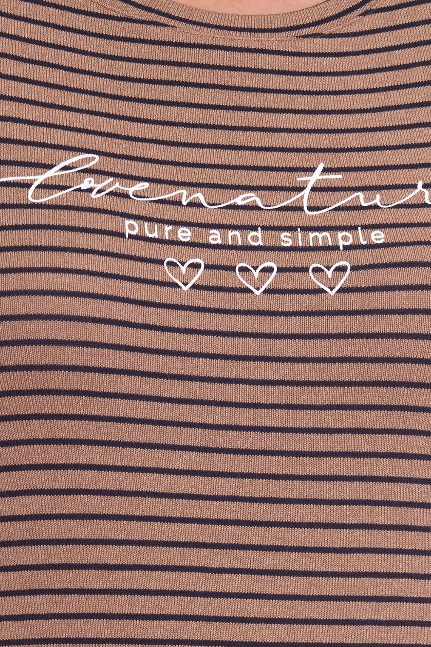 Street One Damen Langarm-Shirt gestreifter Pullover mit Schriftzug auf der Front 23254627 Braun