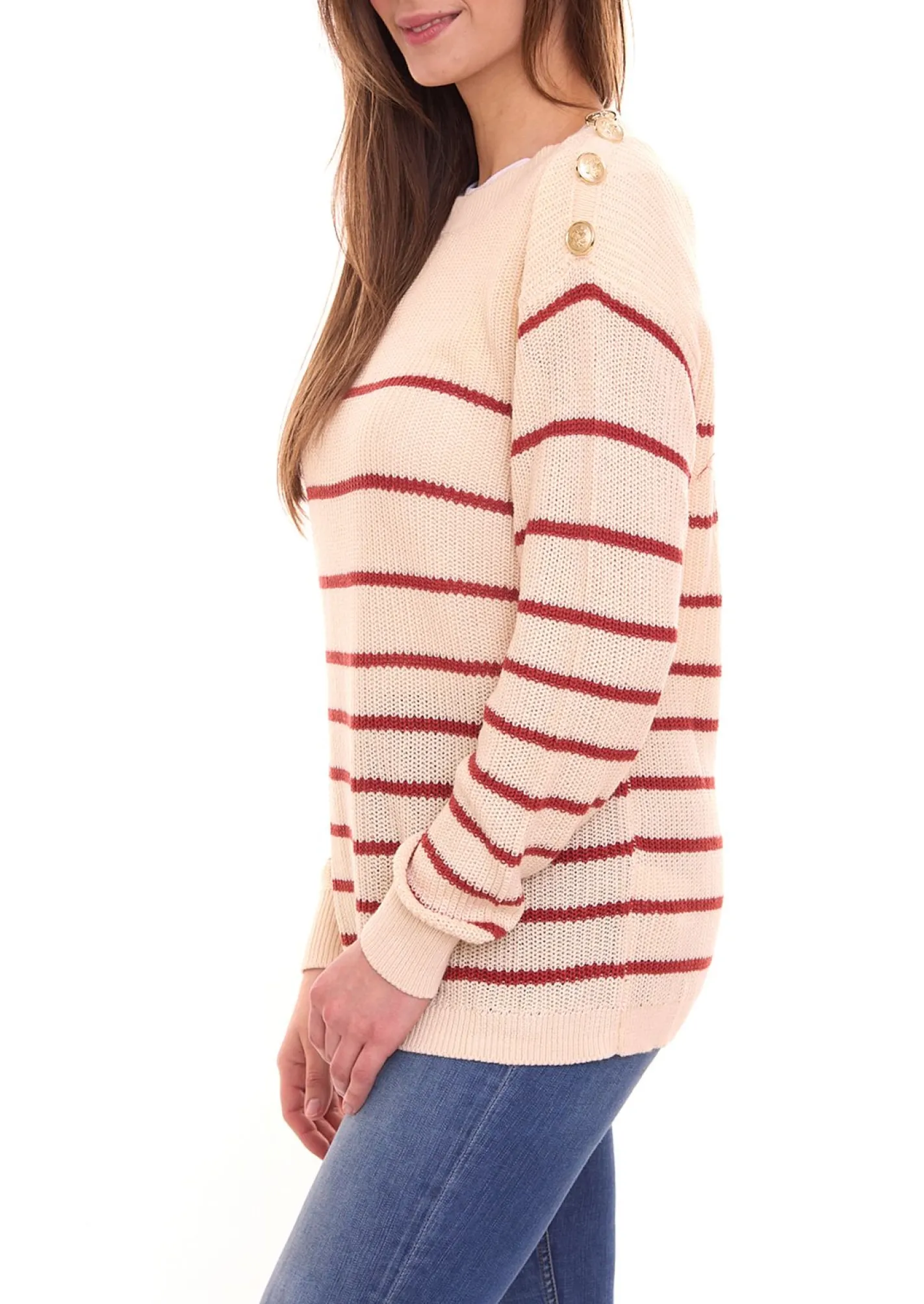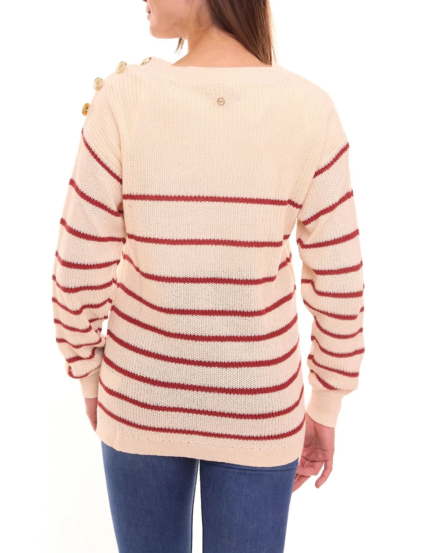 - eine Schulter mit Knöpfen verziert