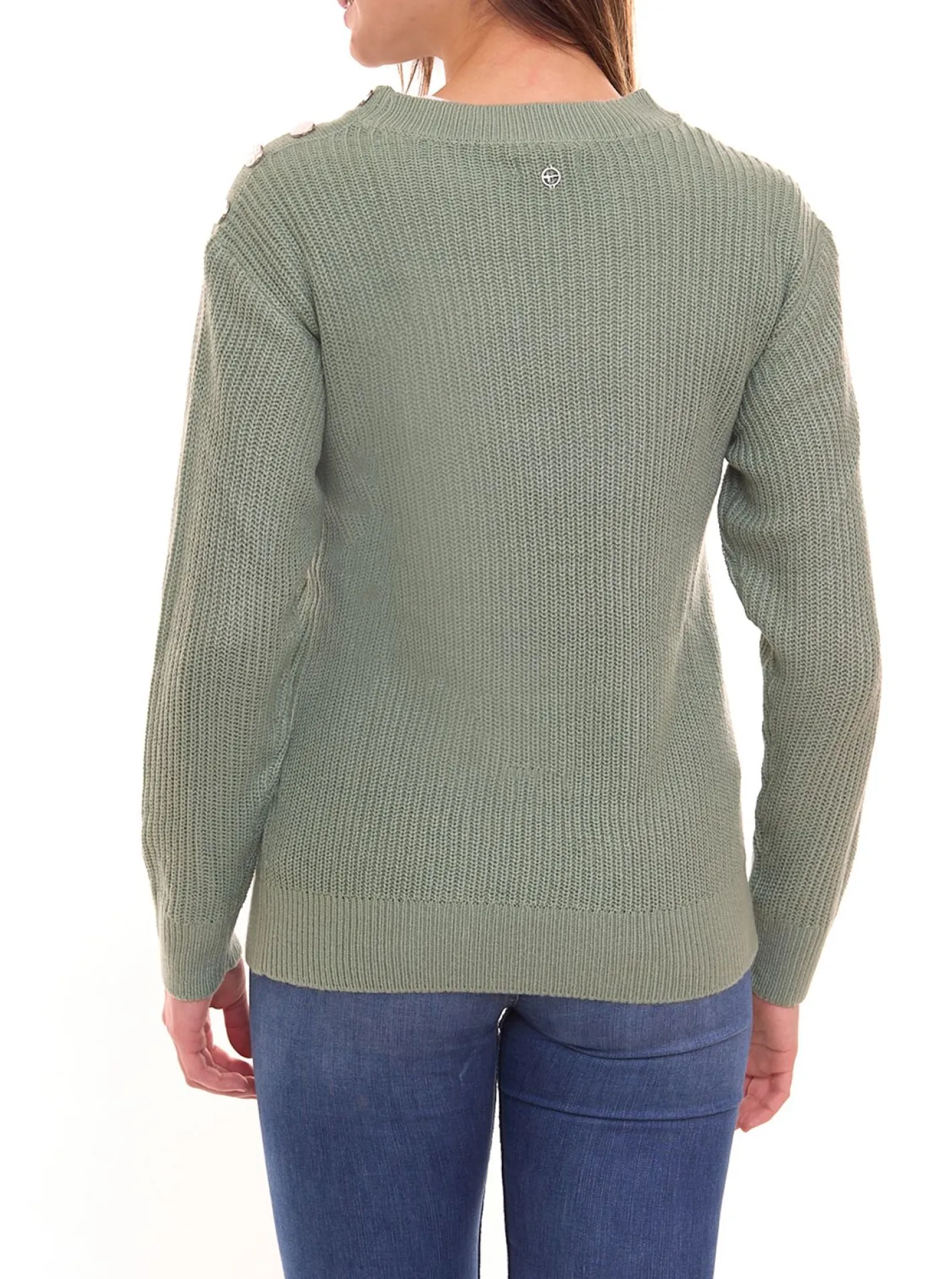 Tamaris Strick-Pullover Damen Rundhals Pulli mit Knöpfen 33918701 Grün