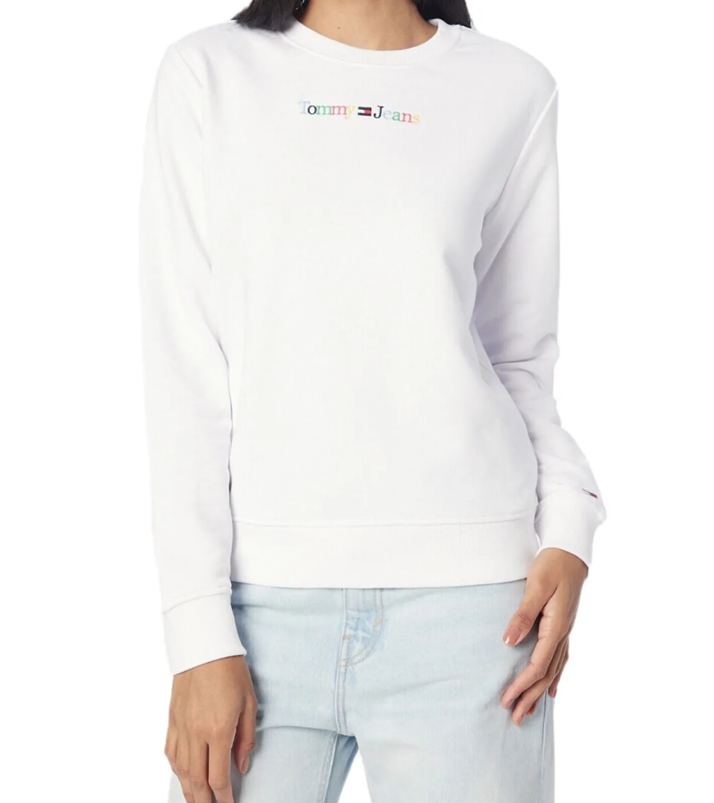 TOMMY JEANS Damen Rundhals-Pullover Langarm-Shirt Baumwoll-Shirt Sweat-Pullover DW0DW15648 YBR Weiß