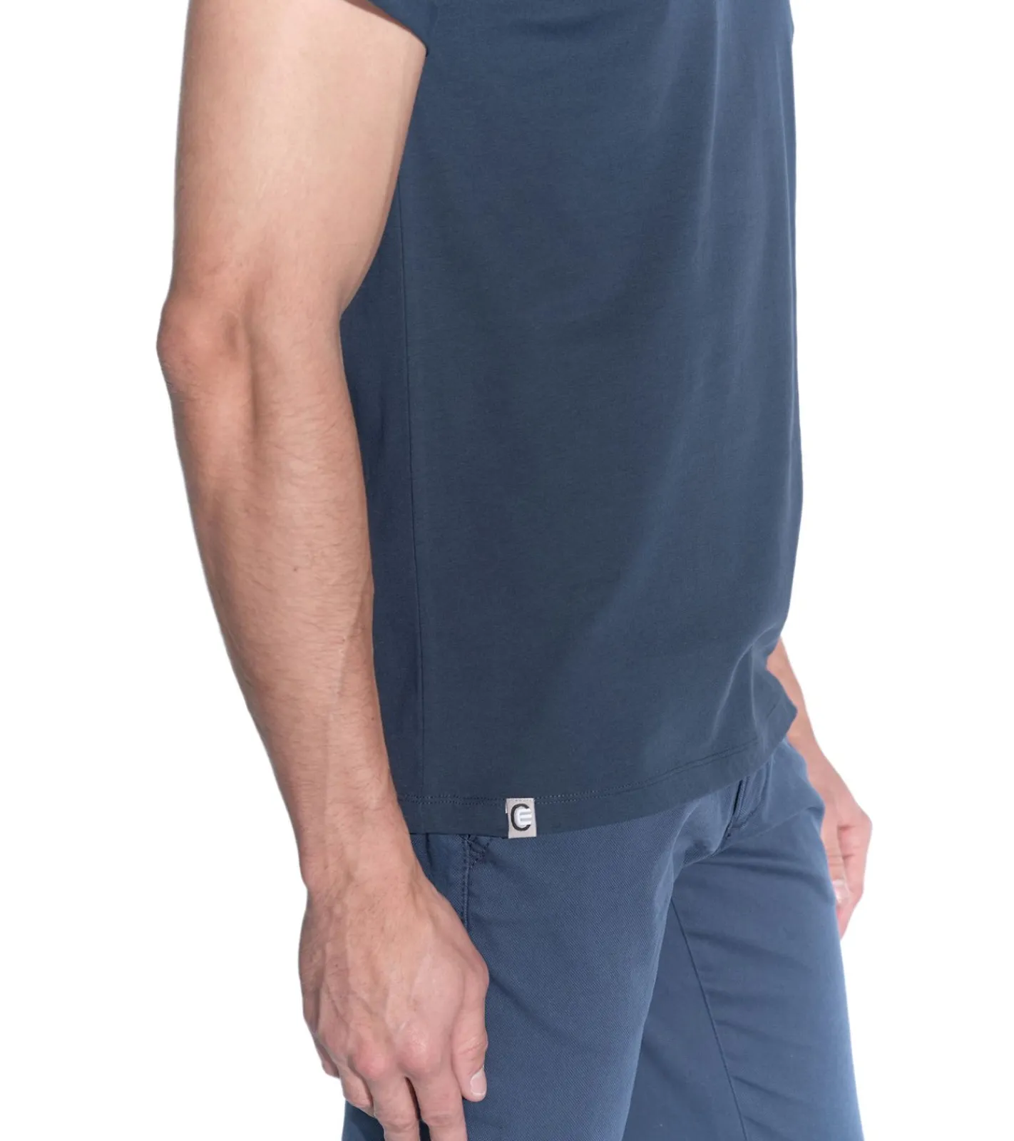 COURSE Herren Basic T-Shirt mit Ärmelaufschlag Rundhals-Shirt aus Baumwolle 901060 Dunkelblau