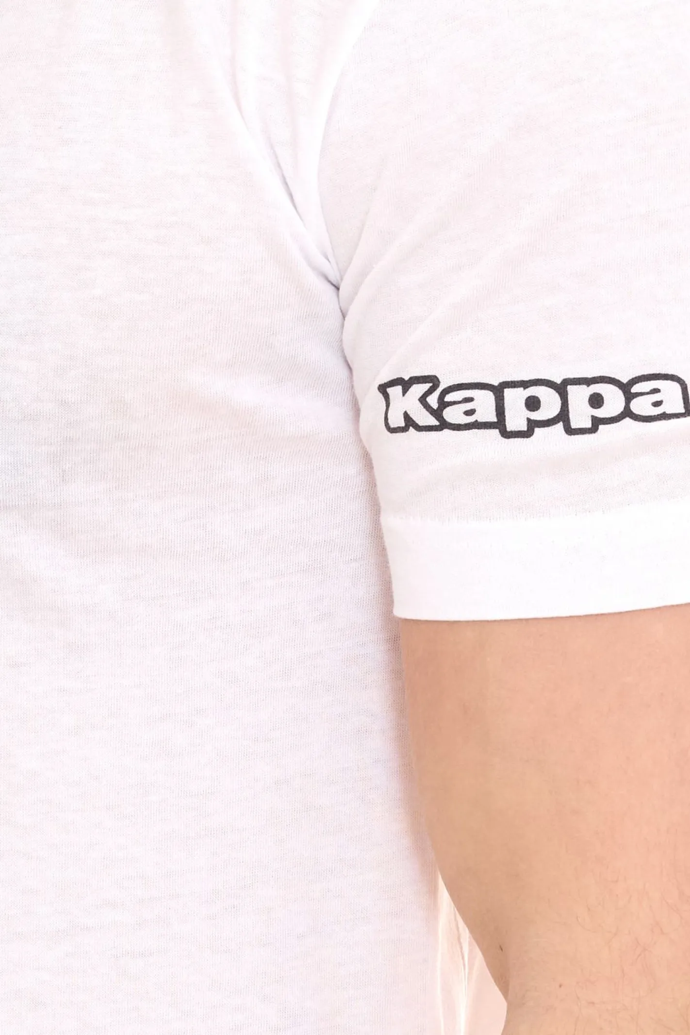 Kappa Herren Baumwoll-Shirt Rundhals-Shirt mit großem Logo-Patch Kurzarm-Shirt 11-4001 A8A Weiß