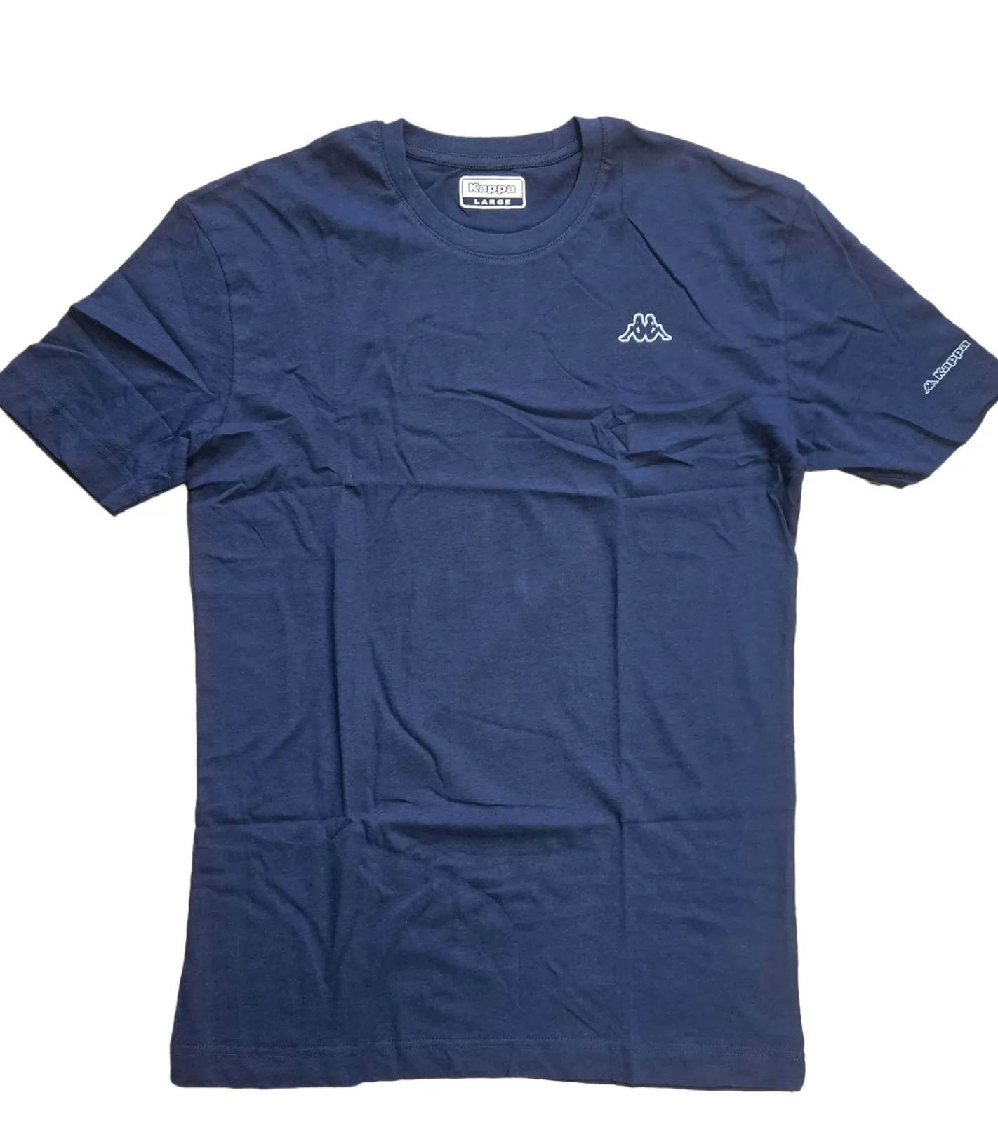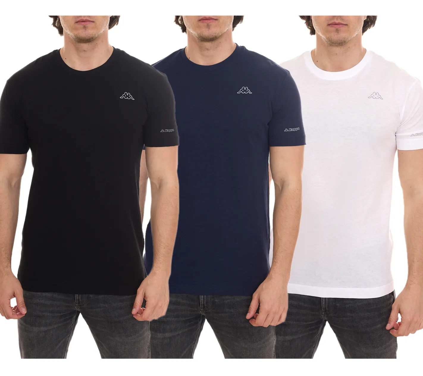 Kappa Herren Baumwoll-Shirt Rundhals-Shirt mit kleinem Logo-Patch Kurzarm-Shirt 711169 Weiß, Blau oder Schwarz