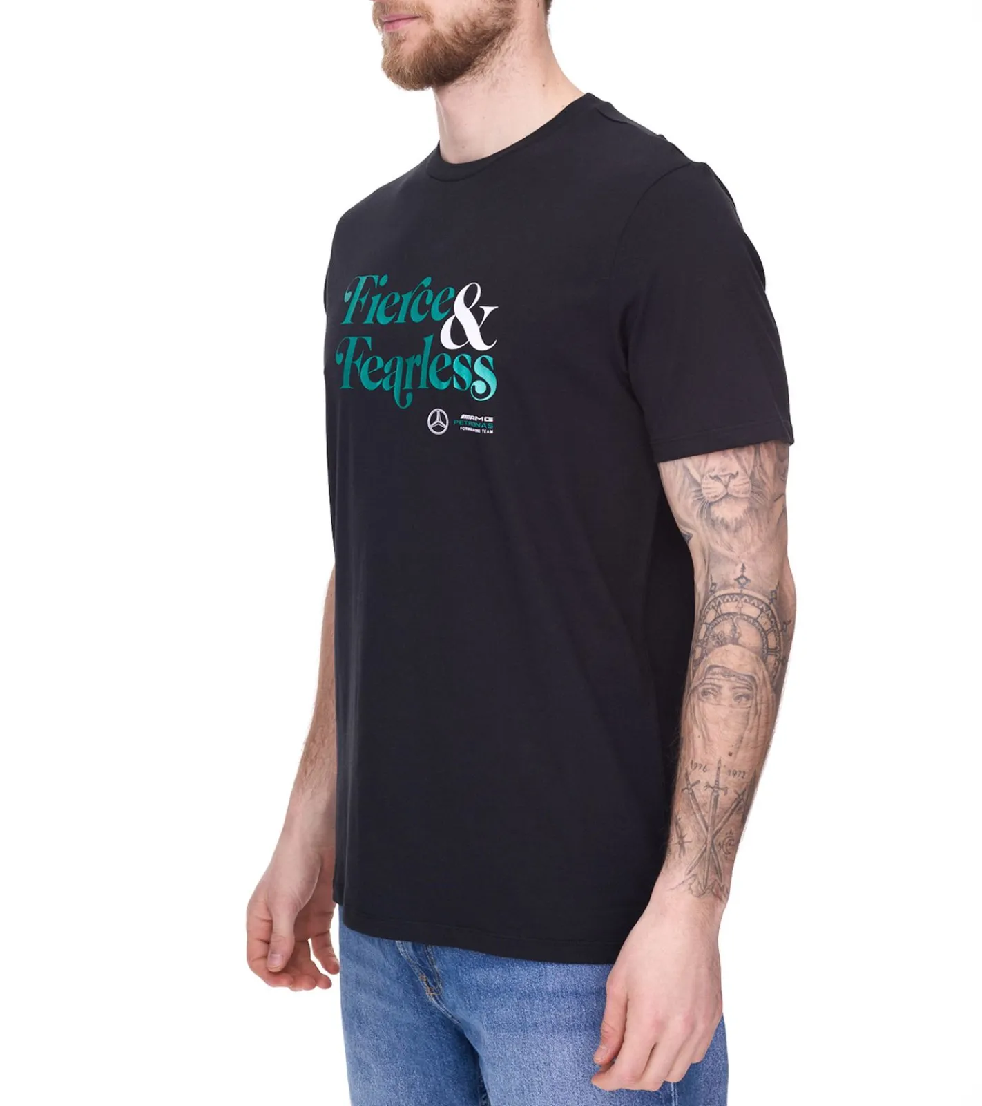 Mercedes-Benz AMG Petronas F1 Fierce and Fearless Graphic Herren T-Shirt Baumwoll-Shirt 701222348 001 Schwarz